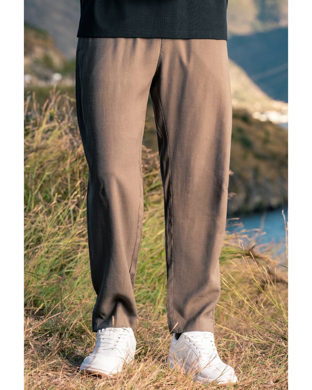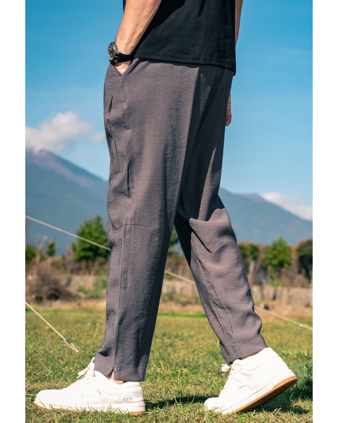 快適な着心地のリネン混素材のワイドレッグイージーパンツ。