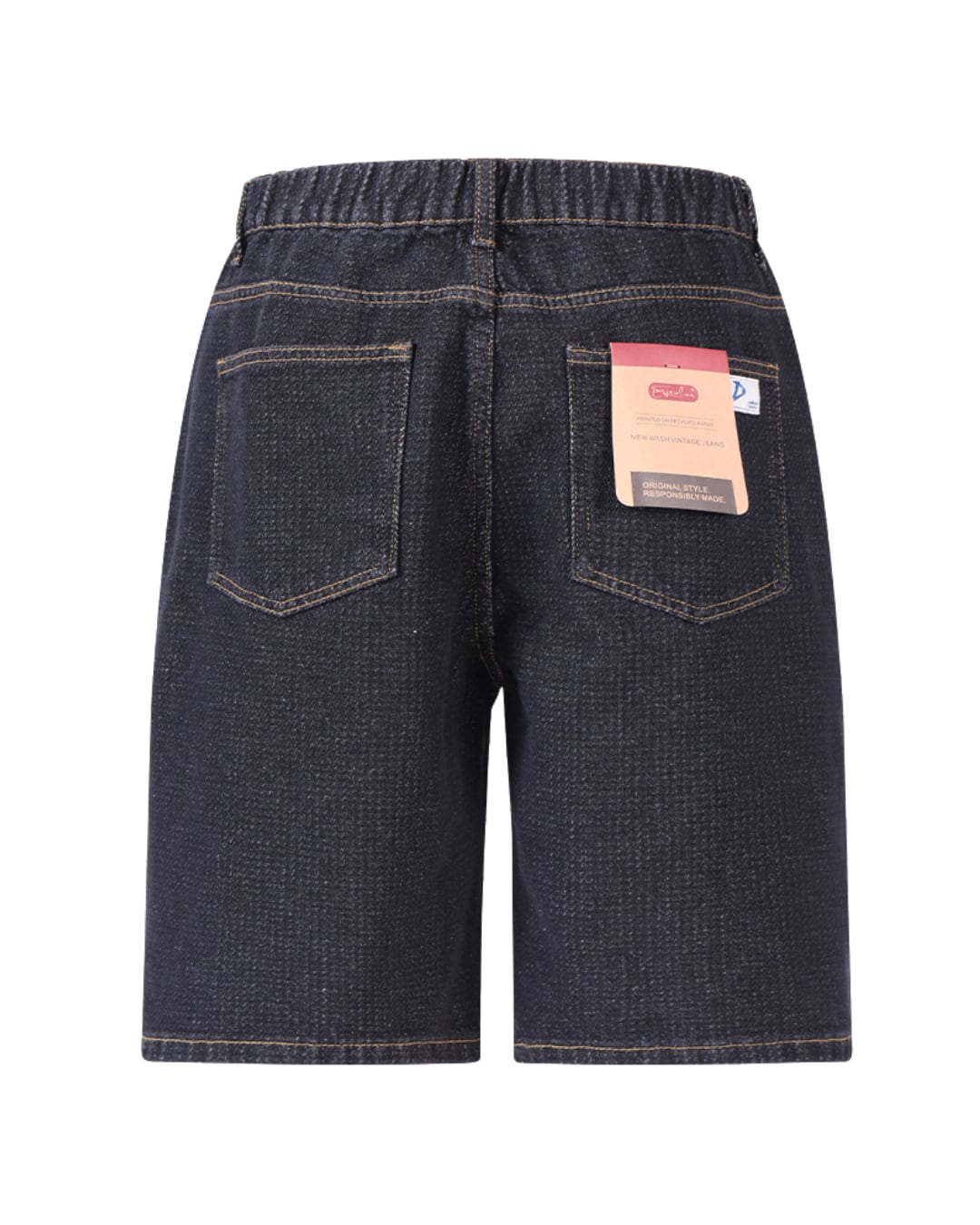 レトロ 膝上丈ストレートデニムショーツ E0022