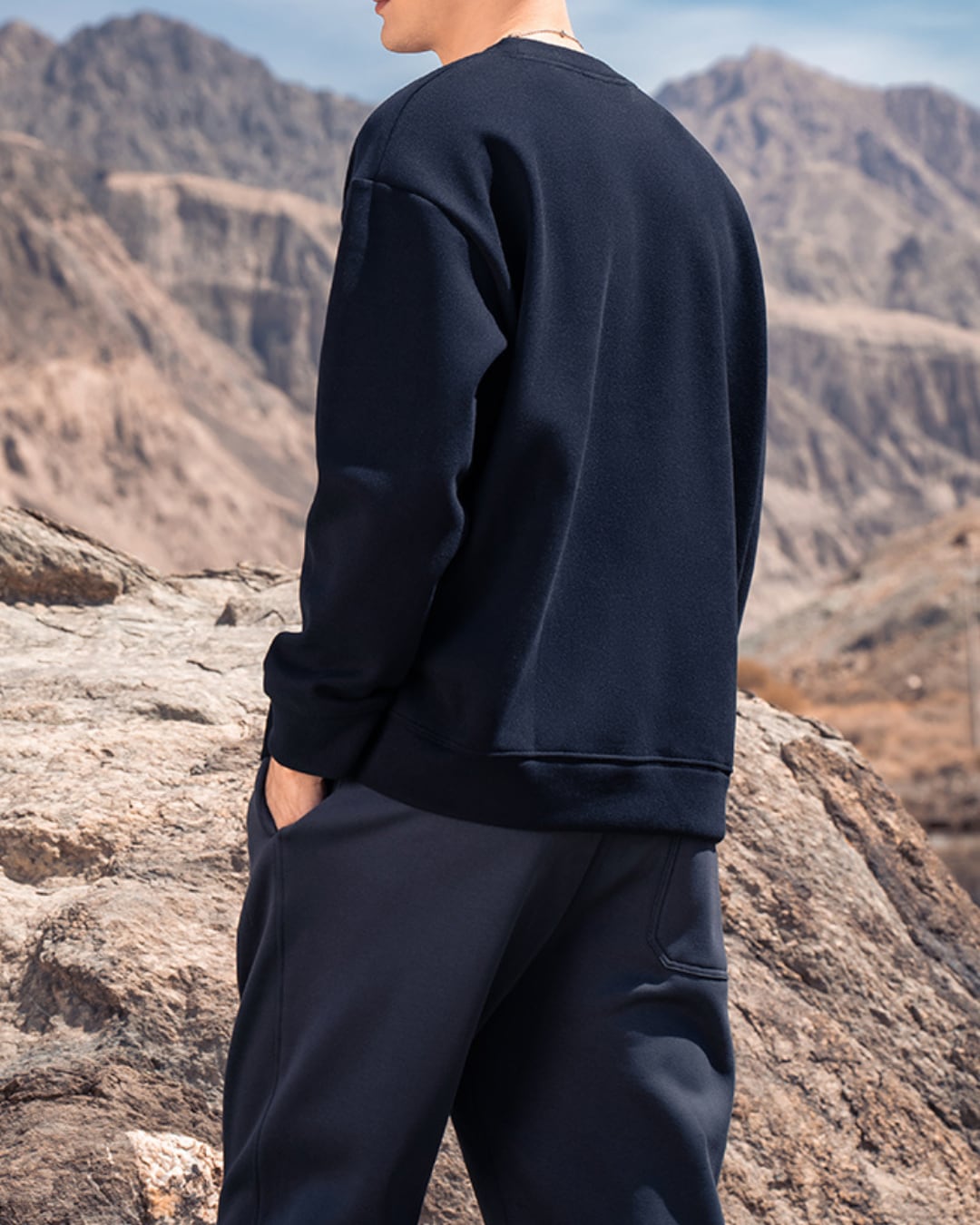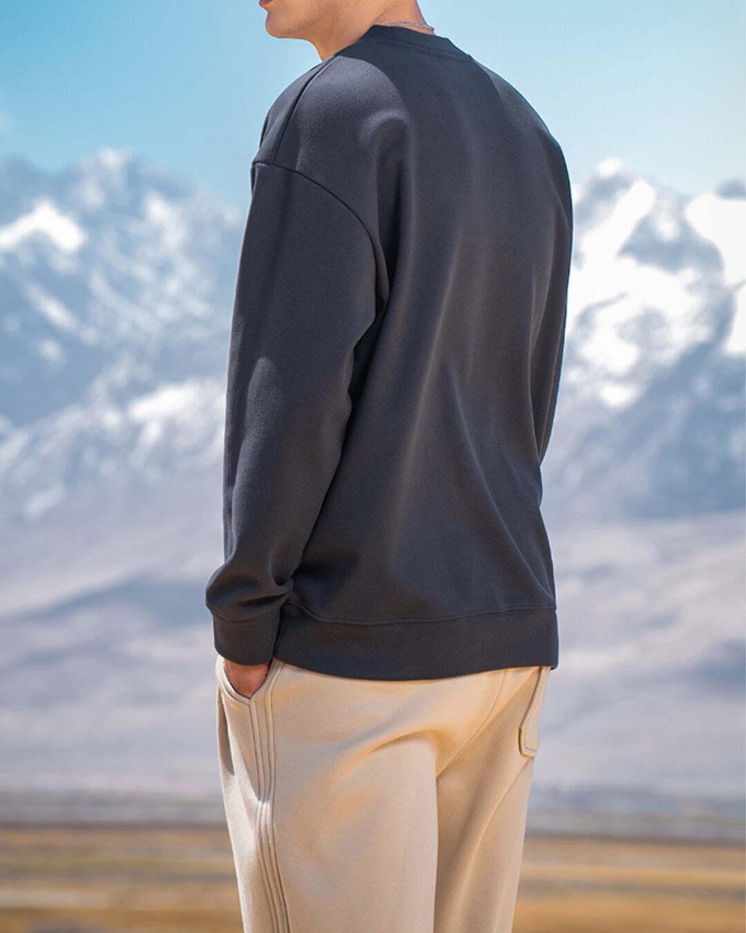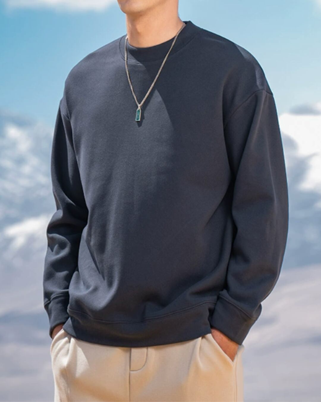 シンプルで着心地の良い長袖クルーネックスウェットシャツ。