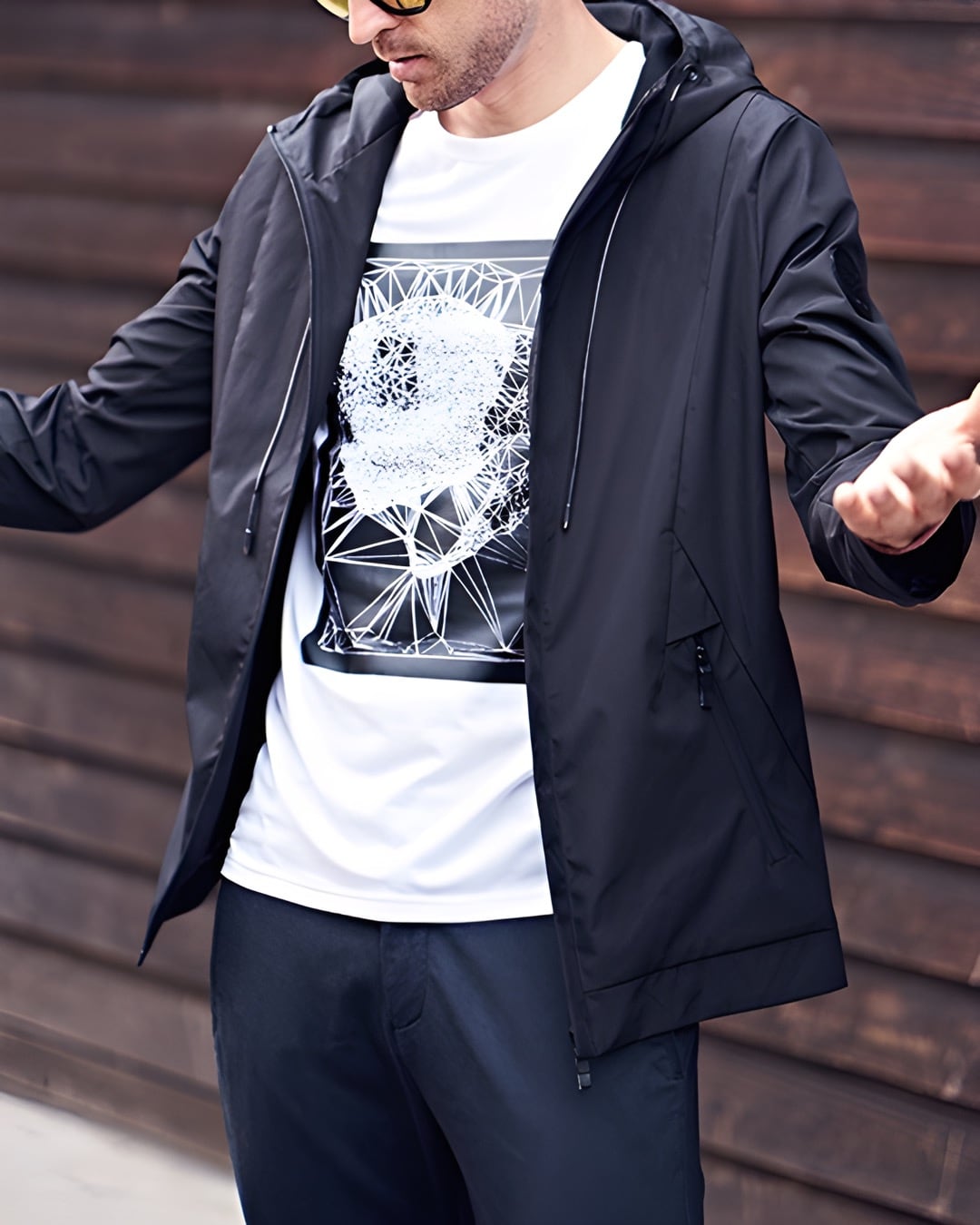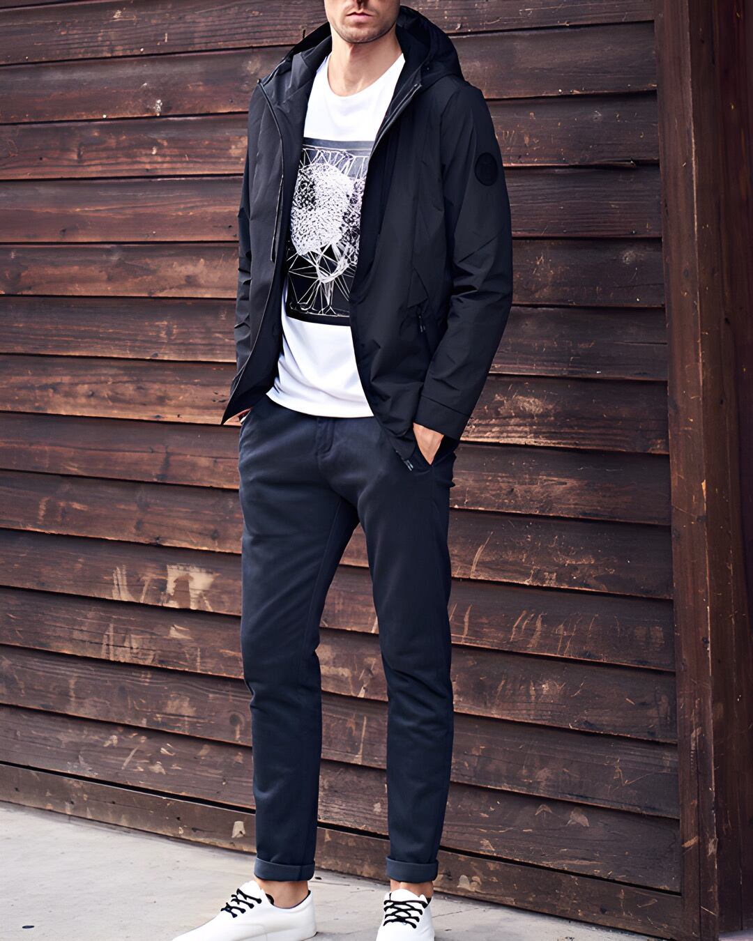 レギュラーフィットで、動きやすさも抜群。フルジップアップなので、気温に合わせて簡単に調節できます。