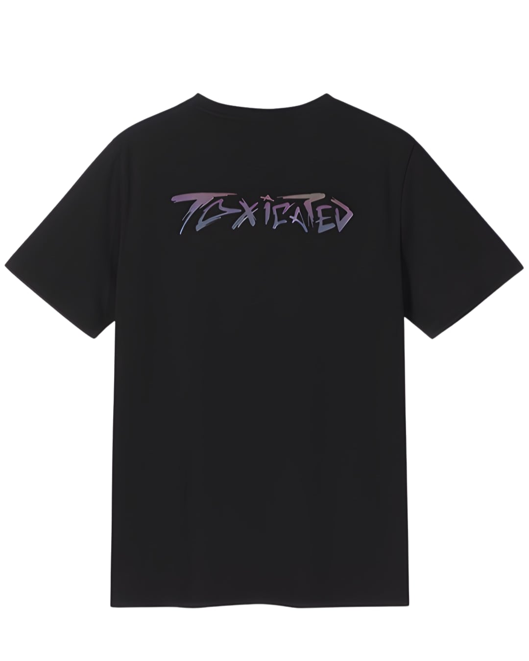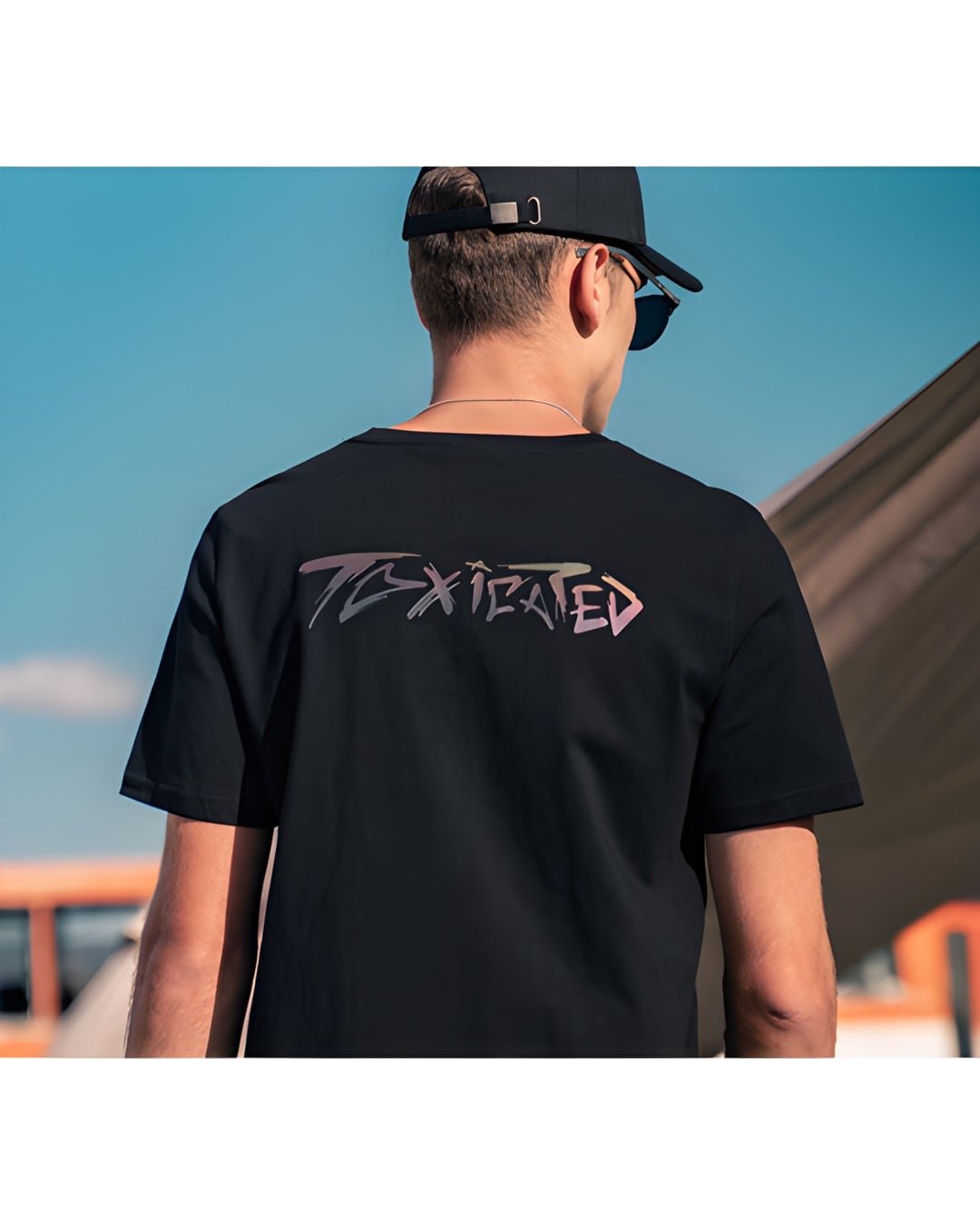 バックプリントが目を惹くクルーネック半袖Tシャツ。