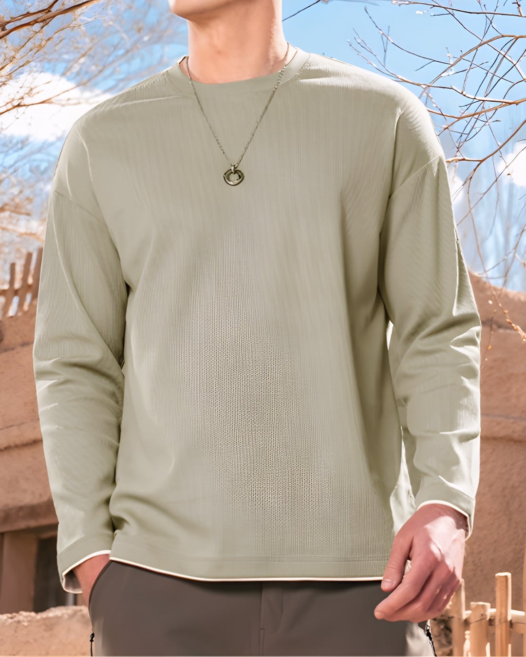 快適な着心地とシンプルなデザインが魅力の長袖Tシャツ。