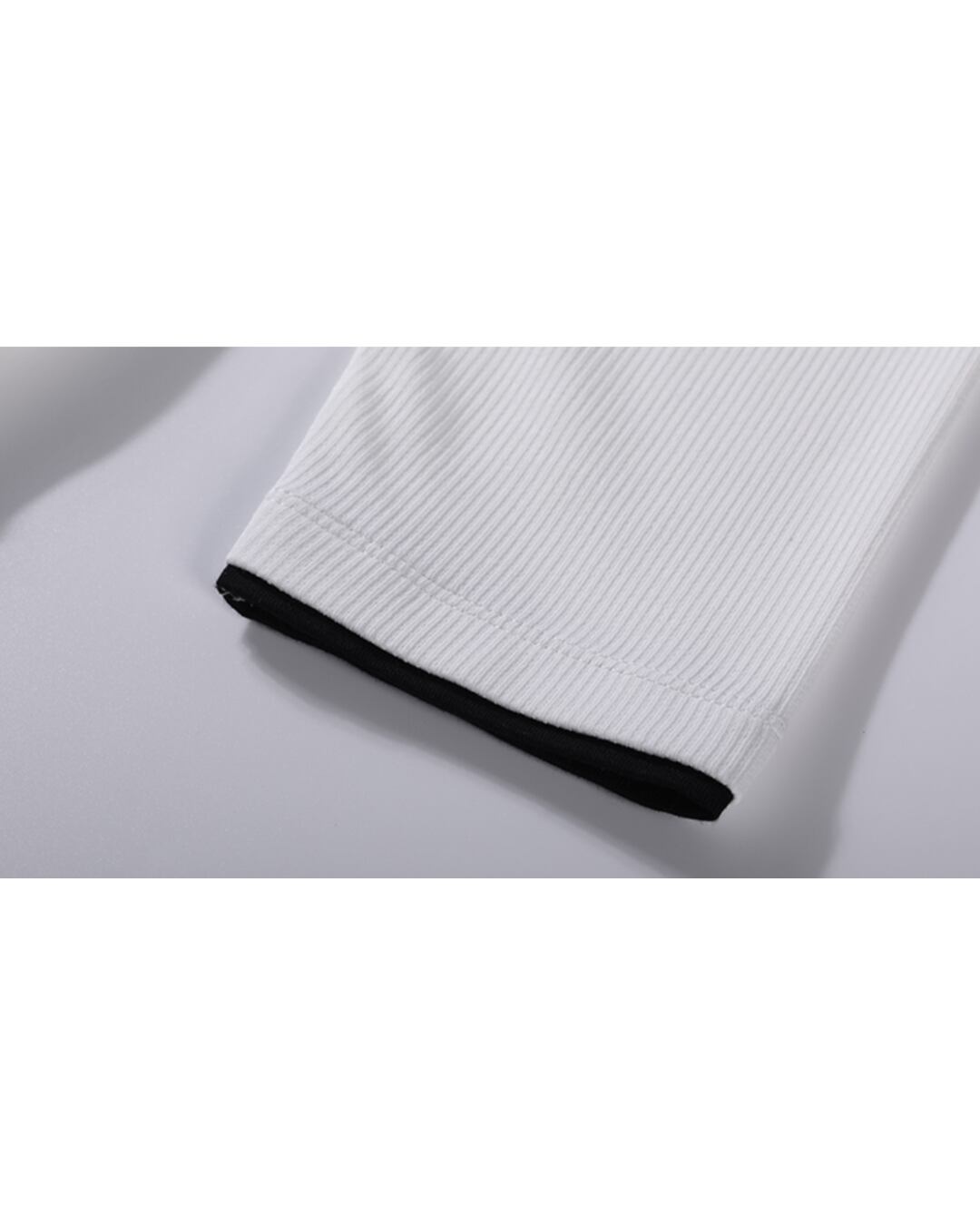 フェイク2ピース ストライプテクスチャTシャツ 6色 E0072