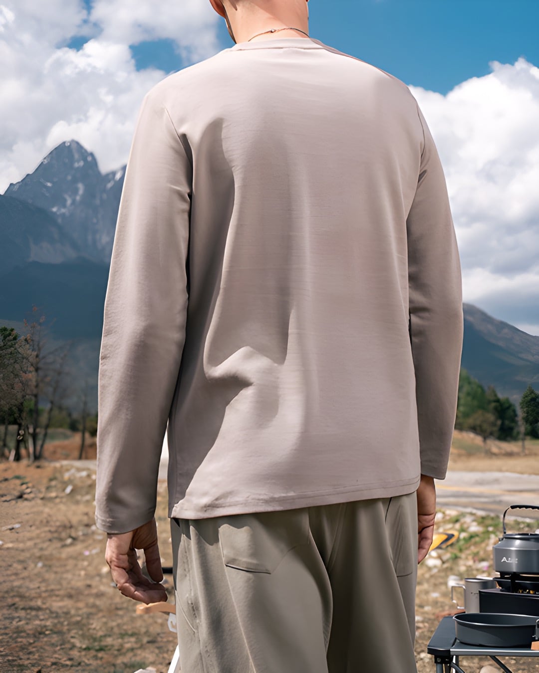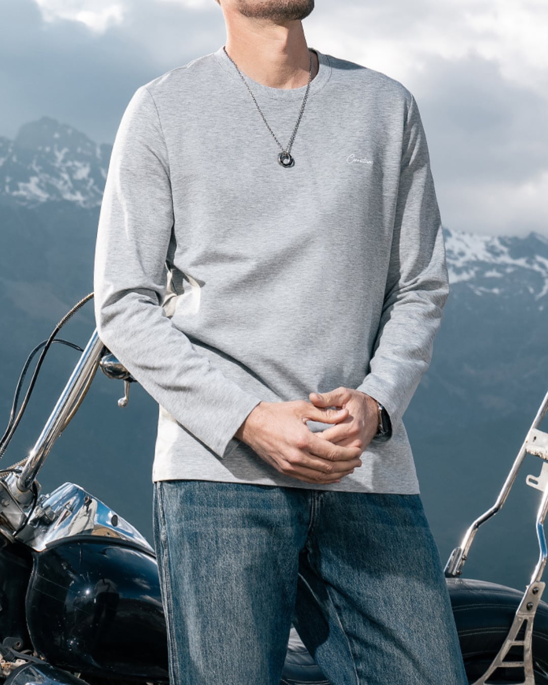 シンプルながらも洗練されたデザインの長袖クルーネックTシャツ。