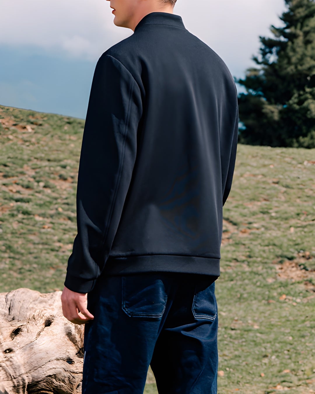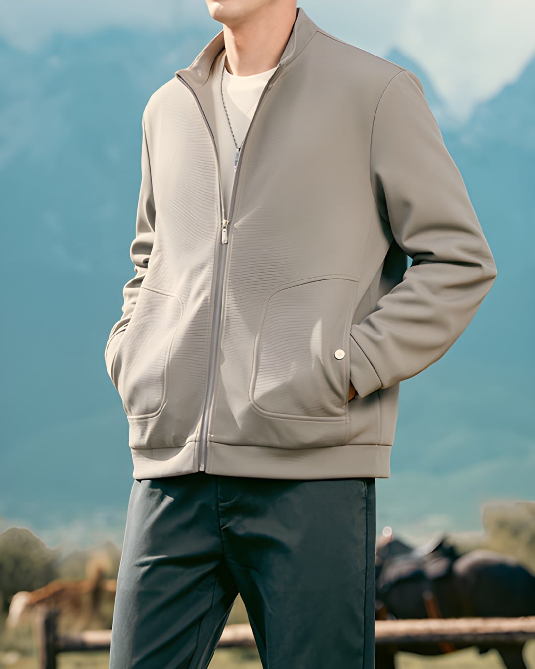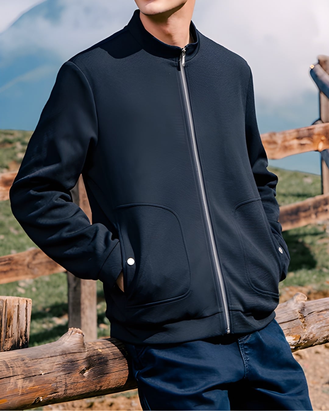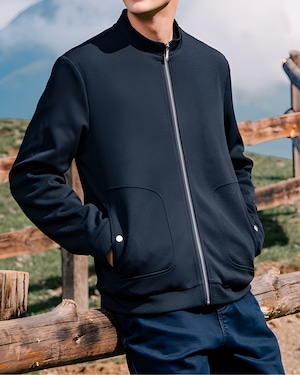 普段使いに最適なスタンドカラーのジップアップスウェットシャツ。