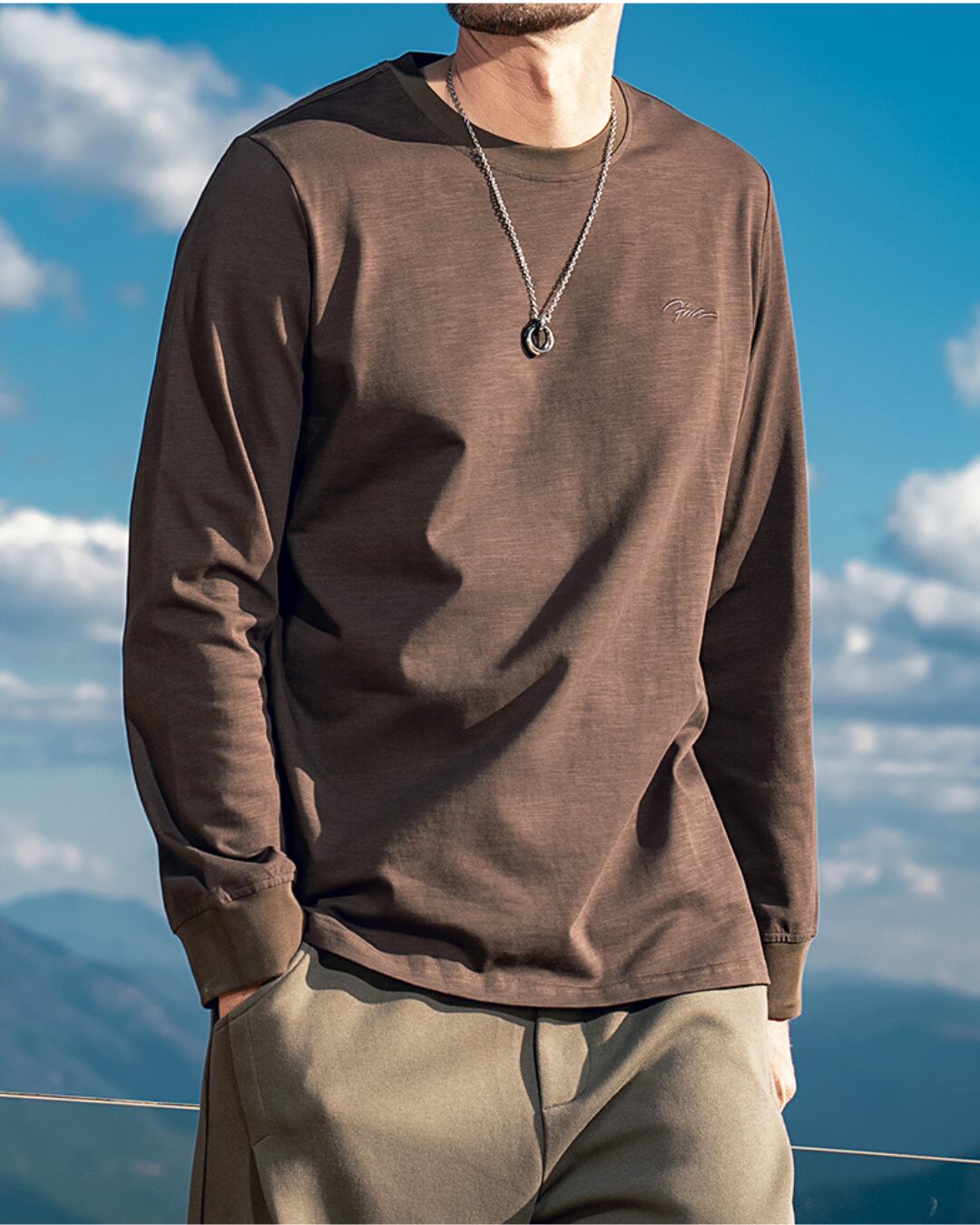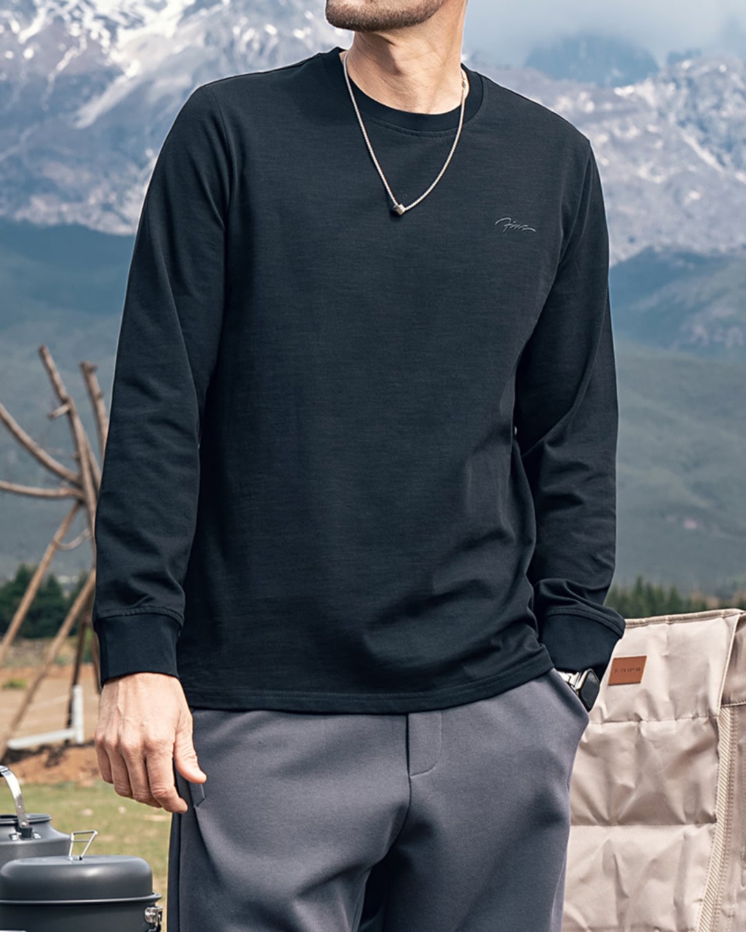 程よくゆとりのあるシルエットのロングスリーブクルーネックTシャツは、デイリーユースからアウトドアシーンまで幅広く活躍。