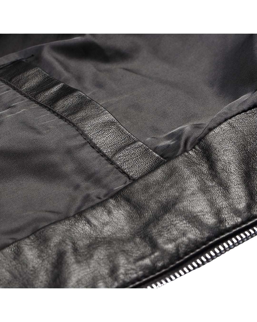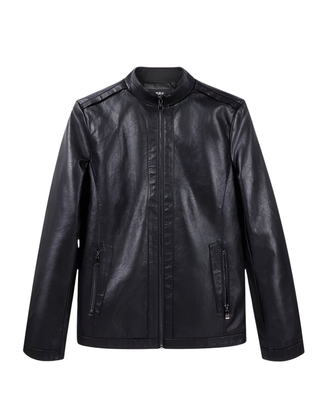 ジップアップ シングルライダースフェイクレザージャケット E0096