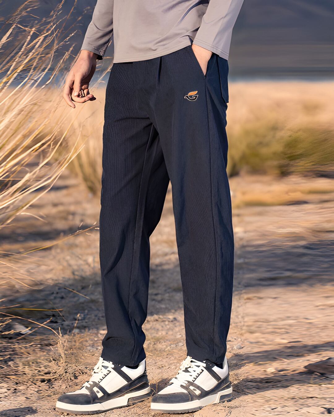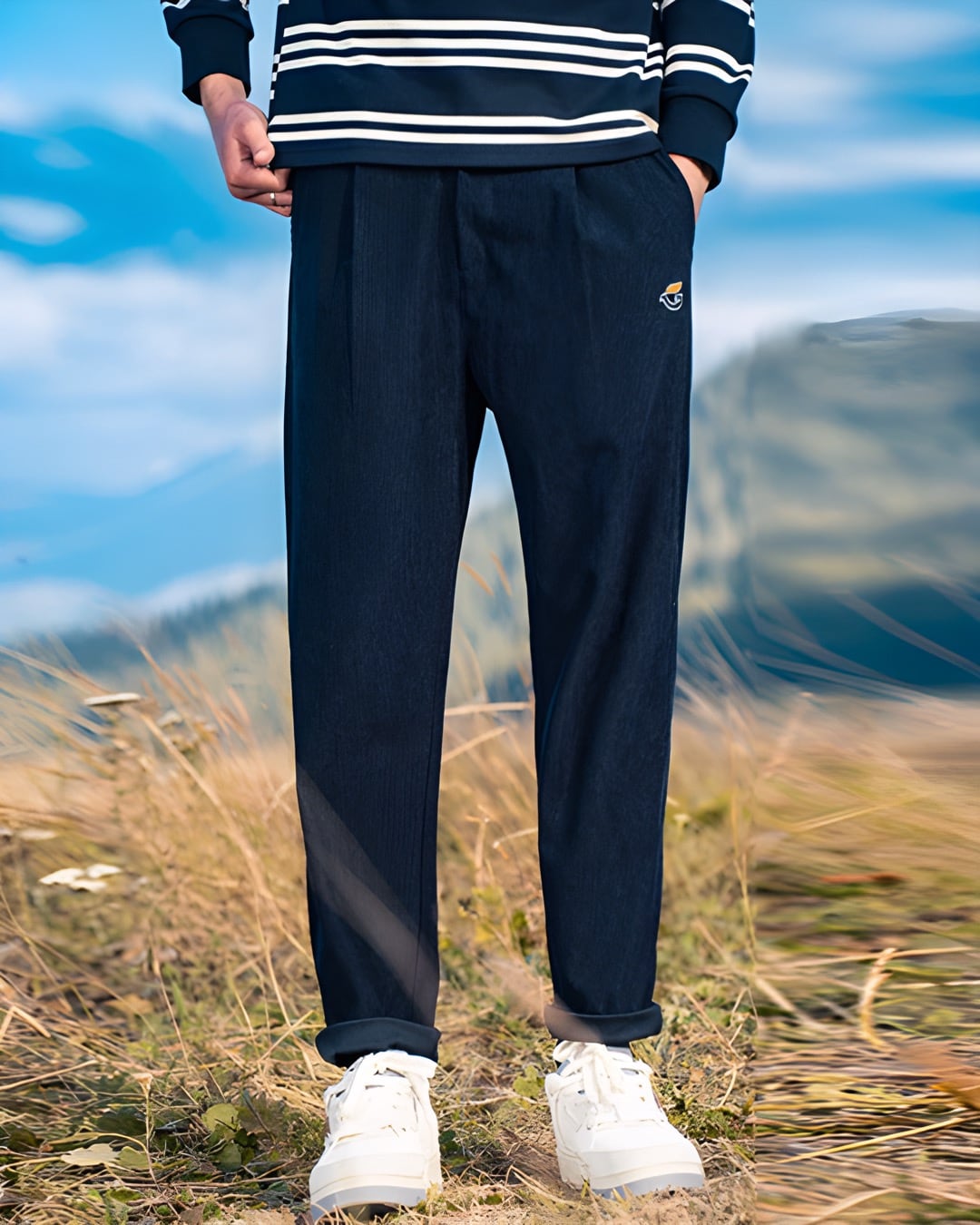 秋の気配を感じるコーデュロイ素材のイージーパンツ。