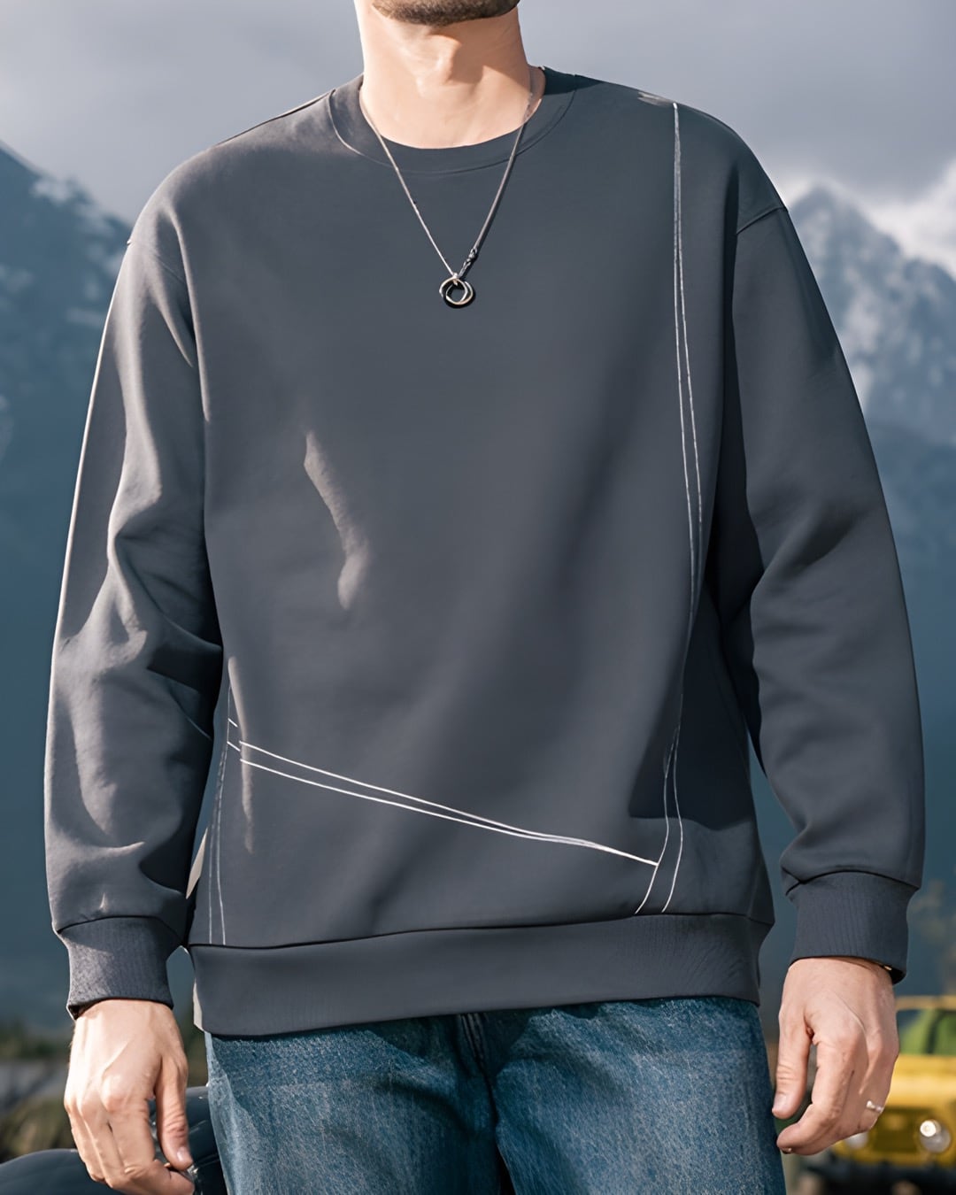ステッチデザイン クルーネックスウェットシャツ 5色 E0119