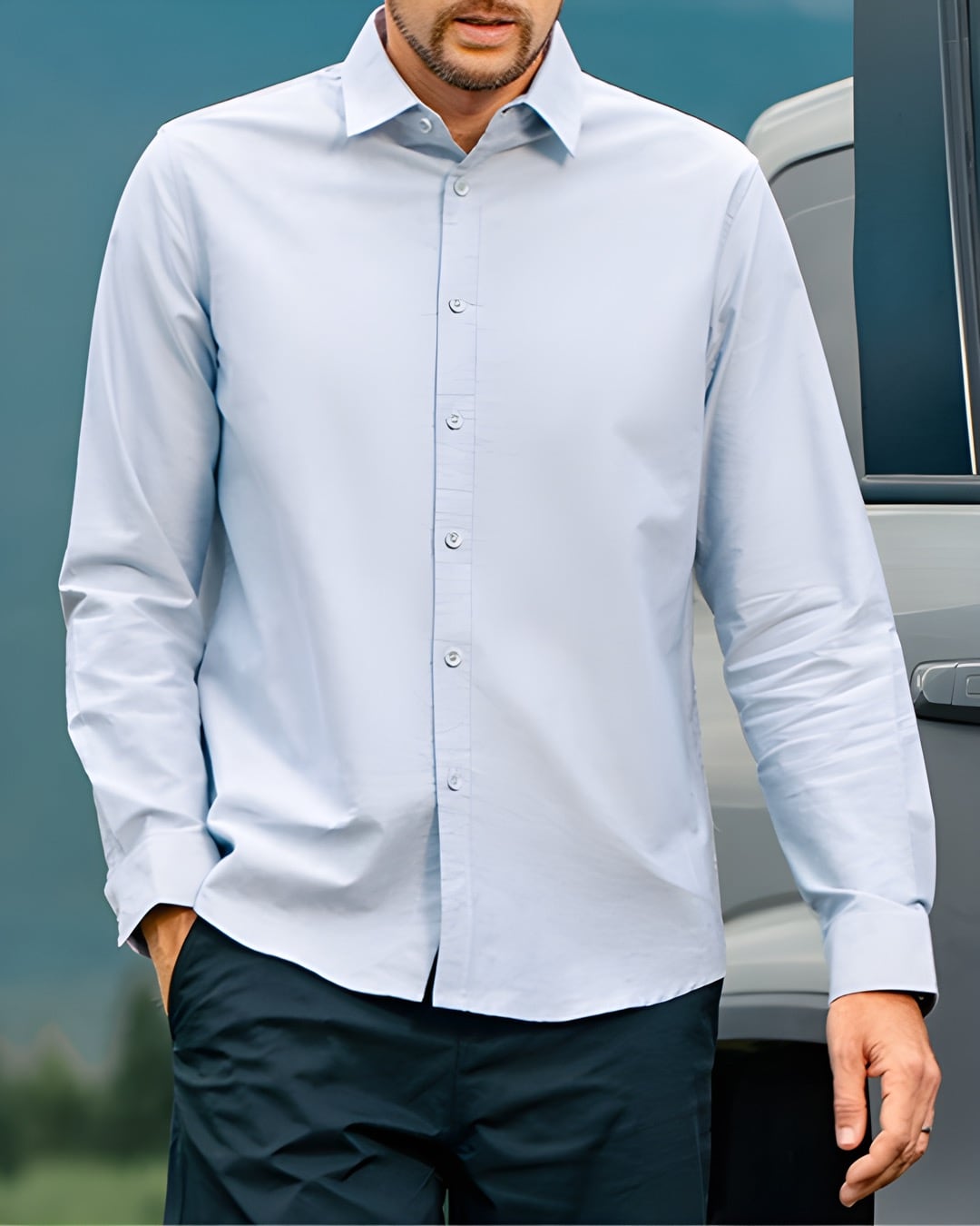 レギュラーフィットの長袖シャツで、着心地の良さとスマートなシルエットを両立。