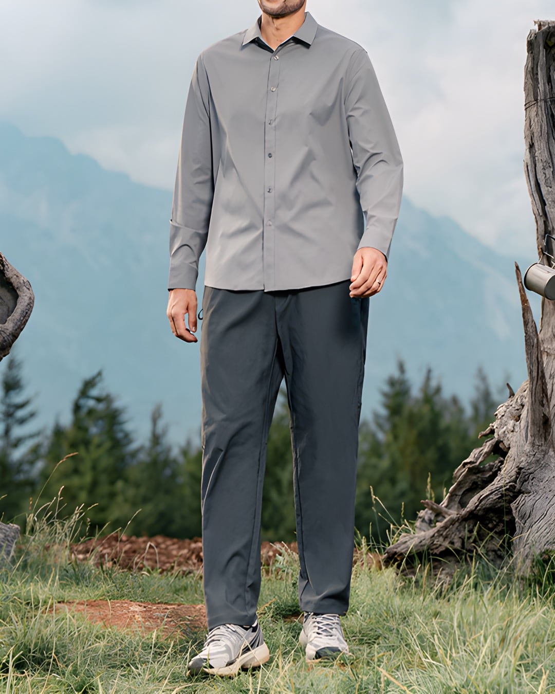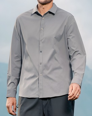 着回し抜群のレギュラーカラー長袖シャツ。