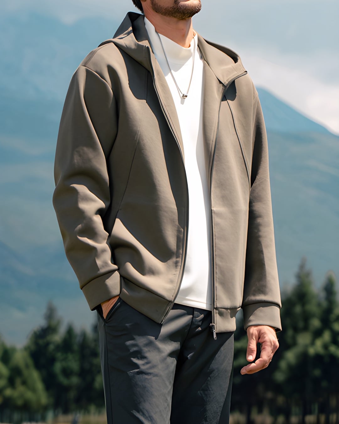 快適な着心地と洗練されたデザインが魅力の長袖ジップアップパーカー。