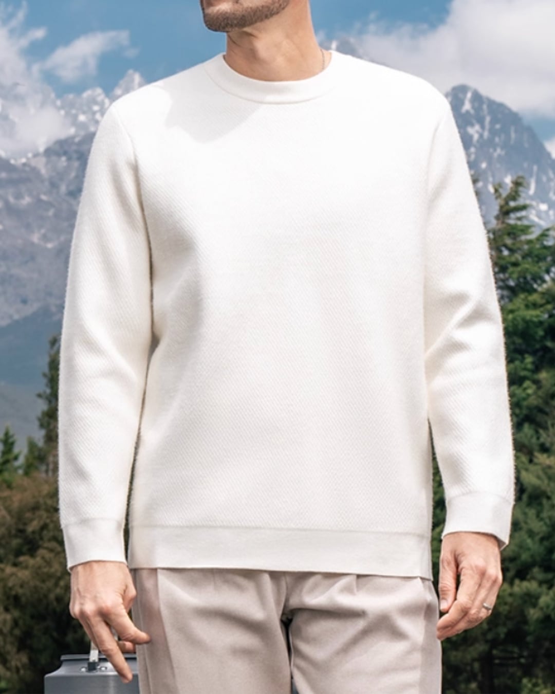 シンプルなデザインで着回し力抜群のクルーネックニット。