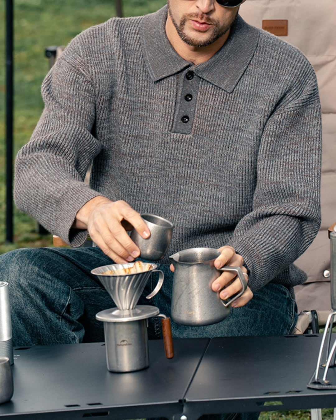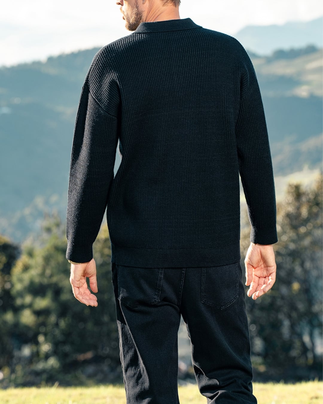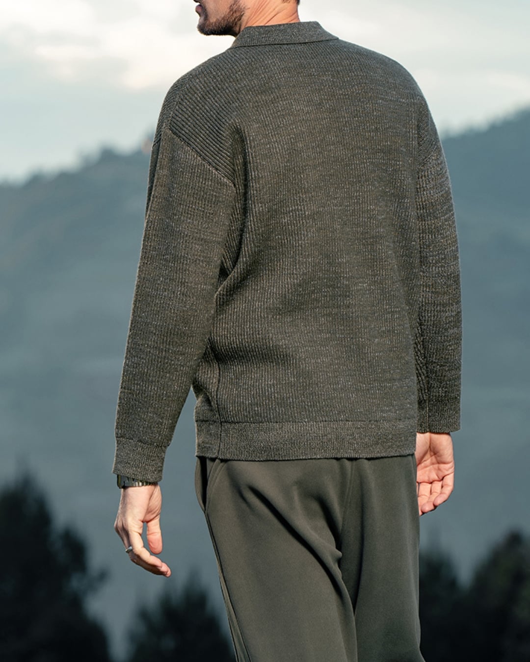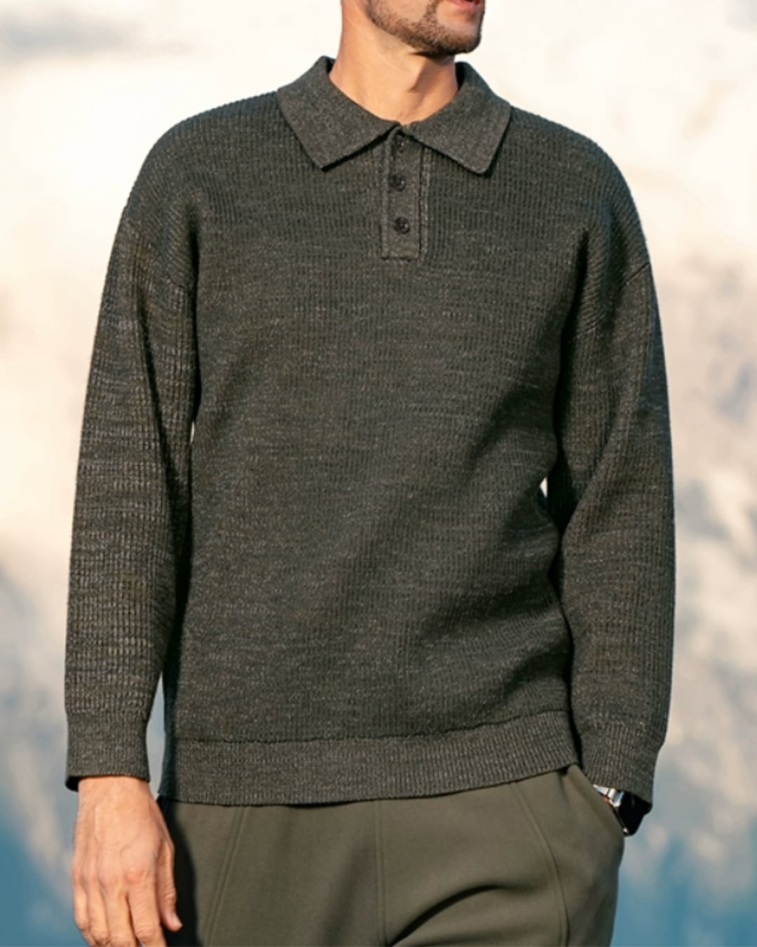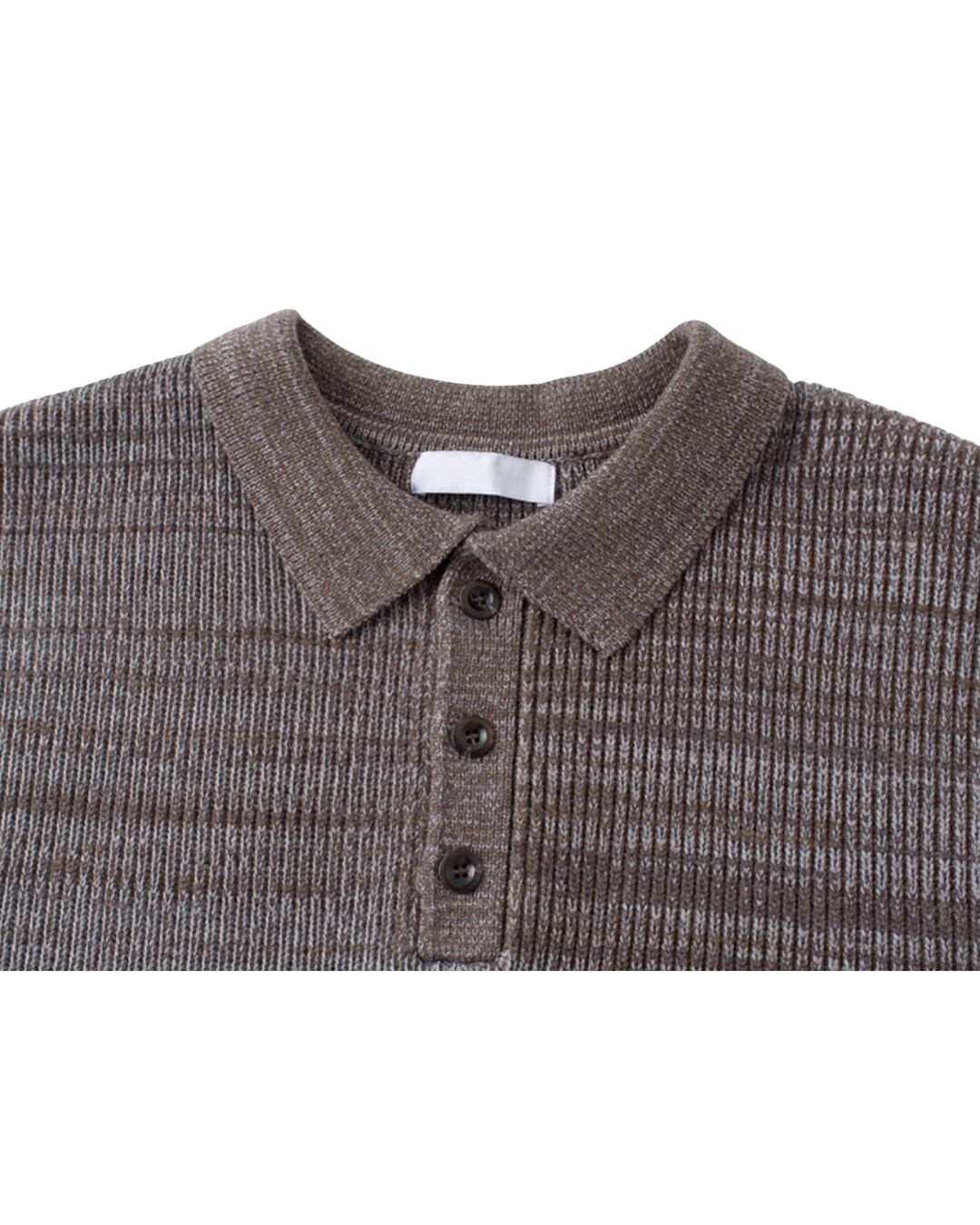 リラックスした雰囲気のオープンカラーニットポロシャツ。