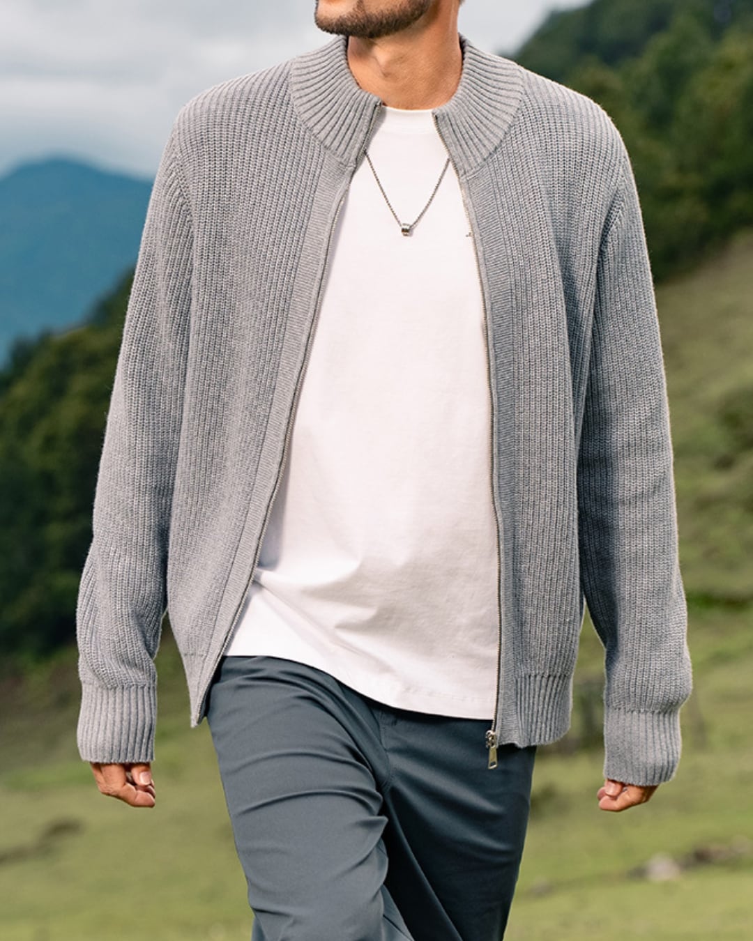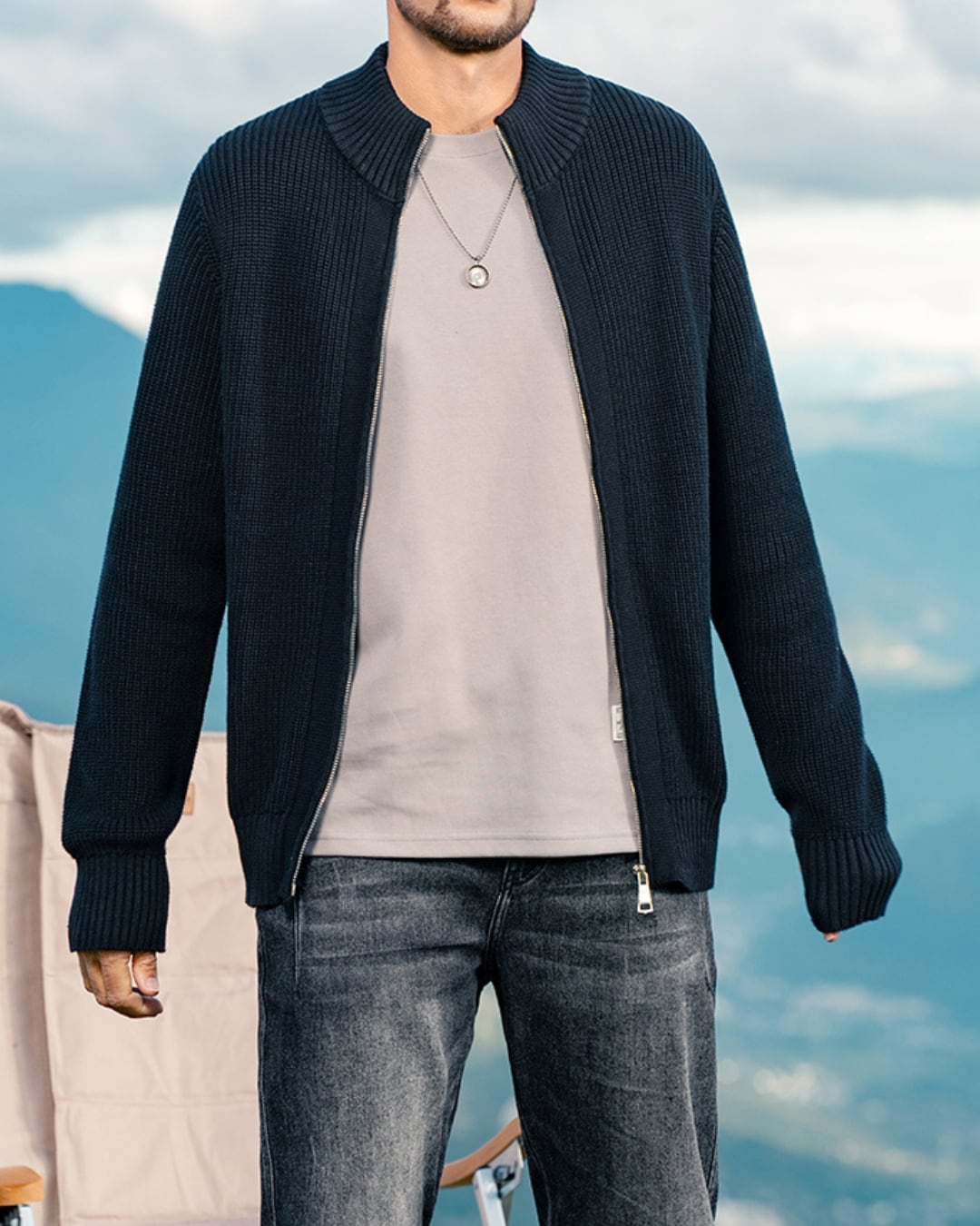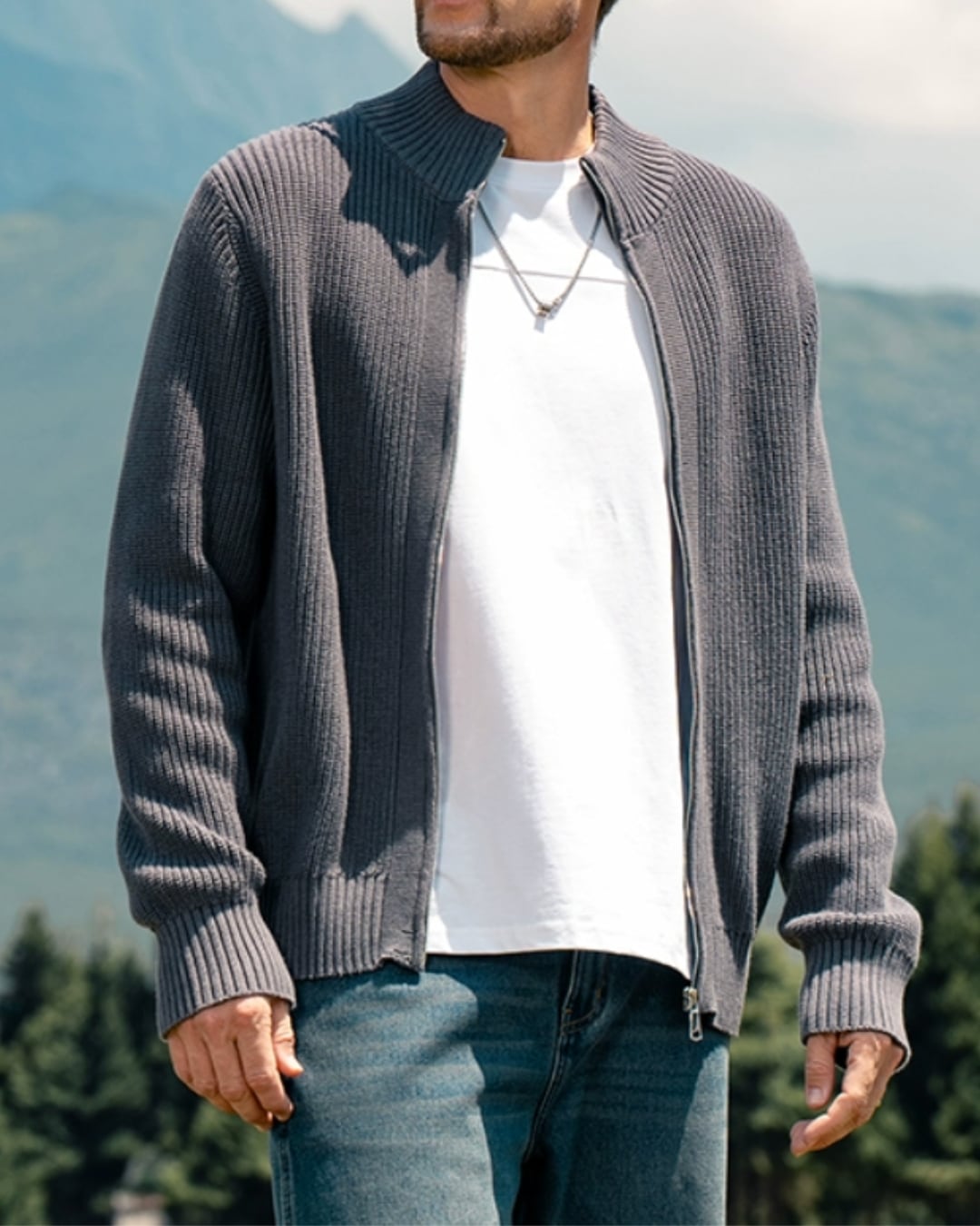 ジップアップで着脱しやすく、Tシャツやシャツの上に羽織るだけで、洗練された大人のカジュアルスタイルが完成。