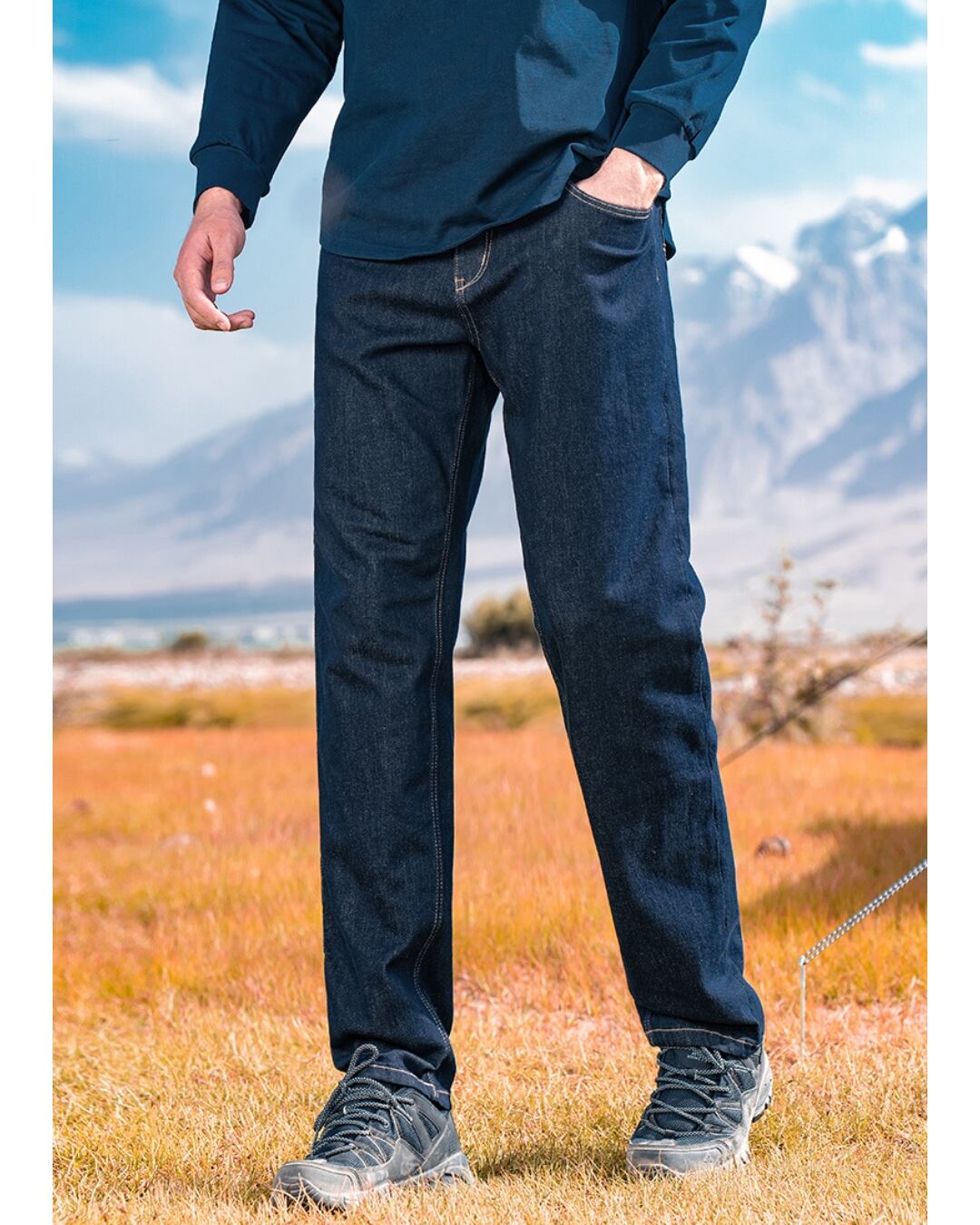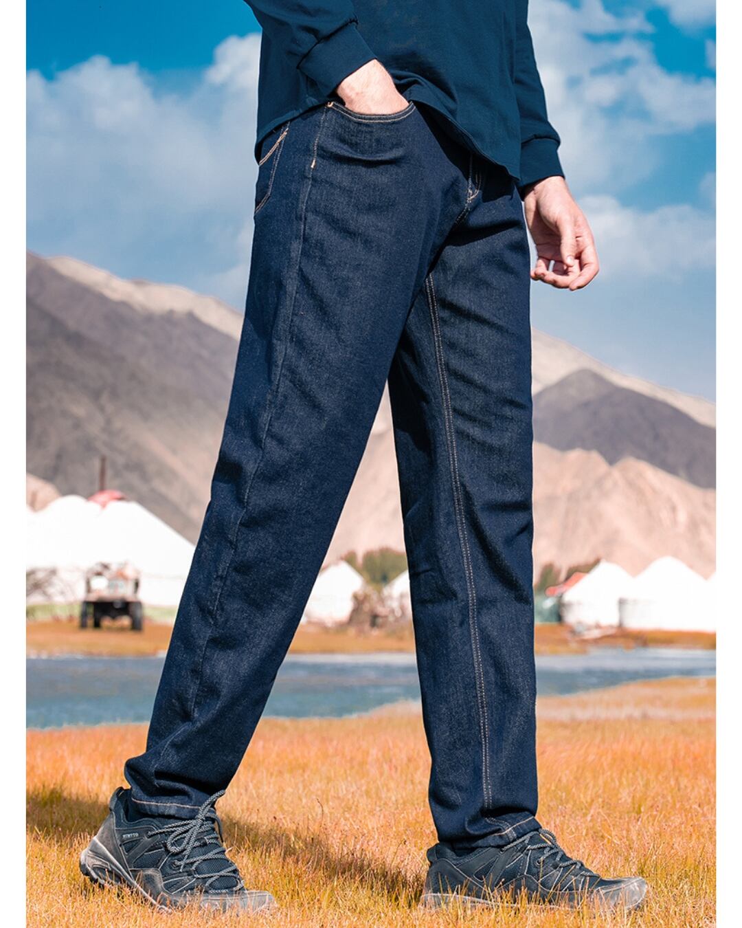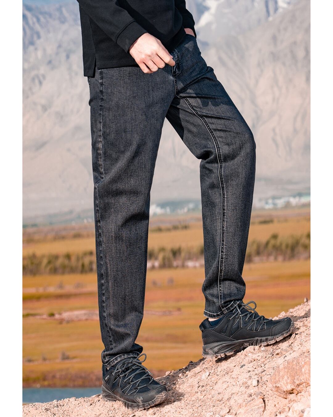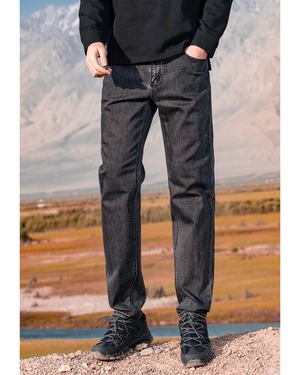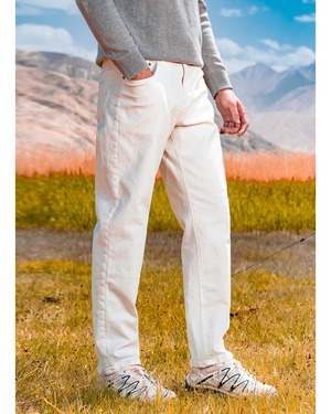 落ち着いた色合いが魅力のレギュラーライズデニム。