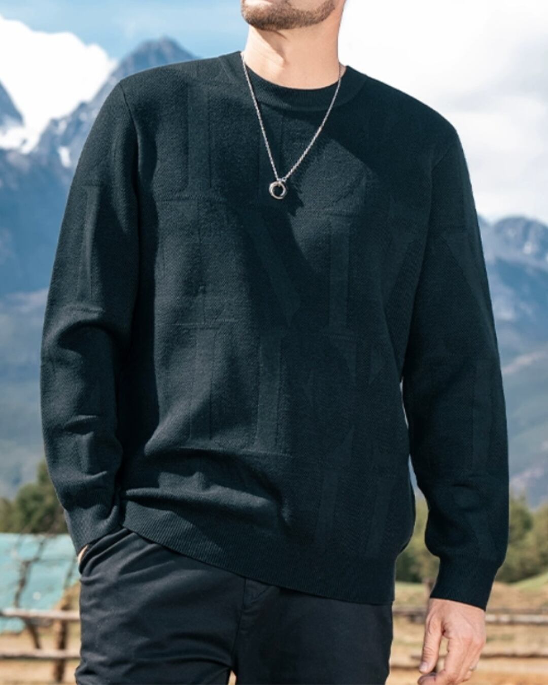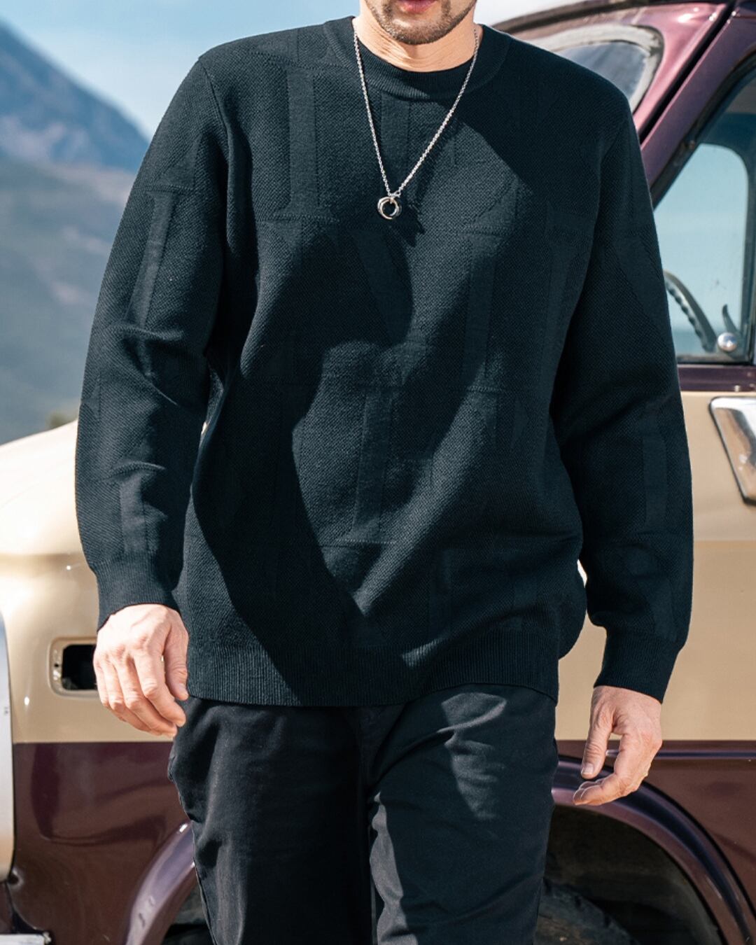 落ち着いた雰囲気で着こなせる長袖クルーネックニット。