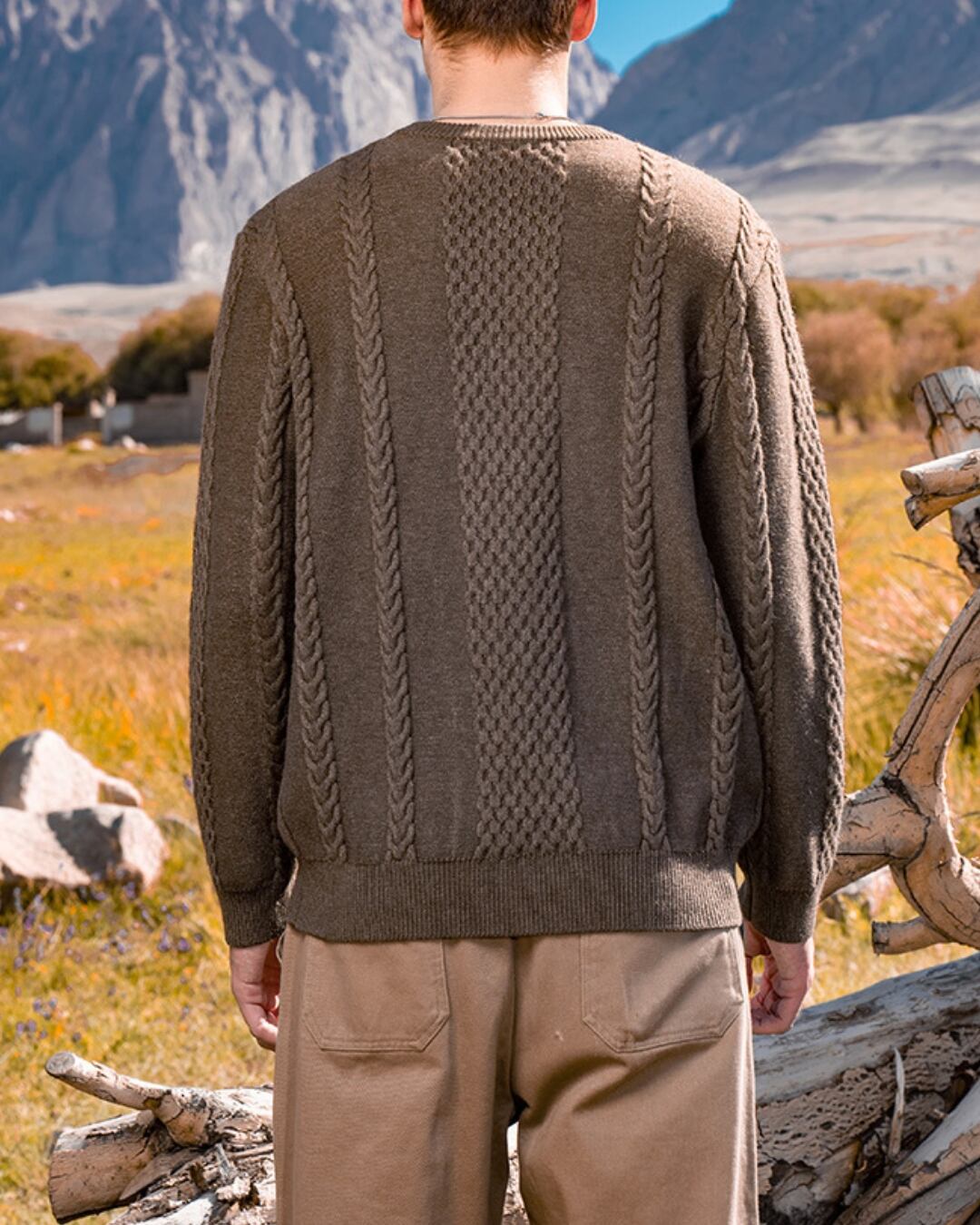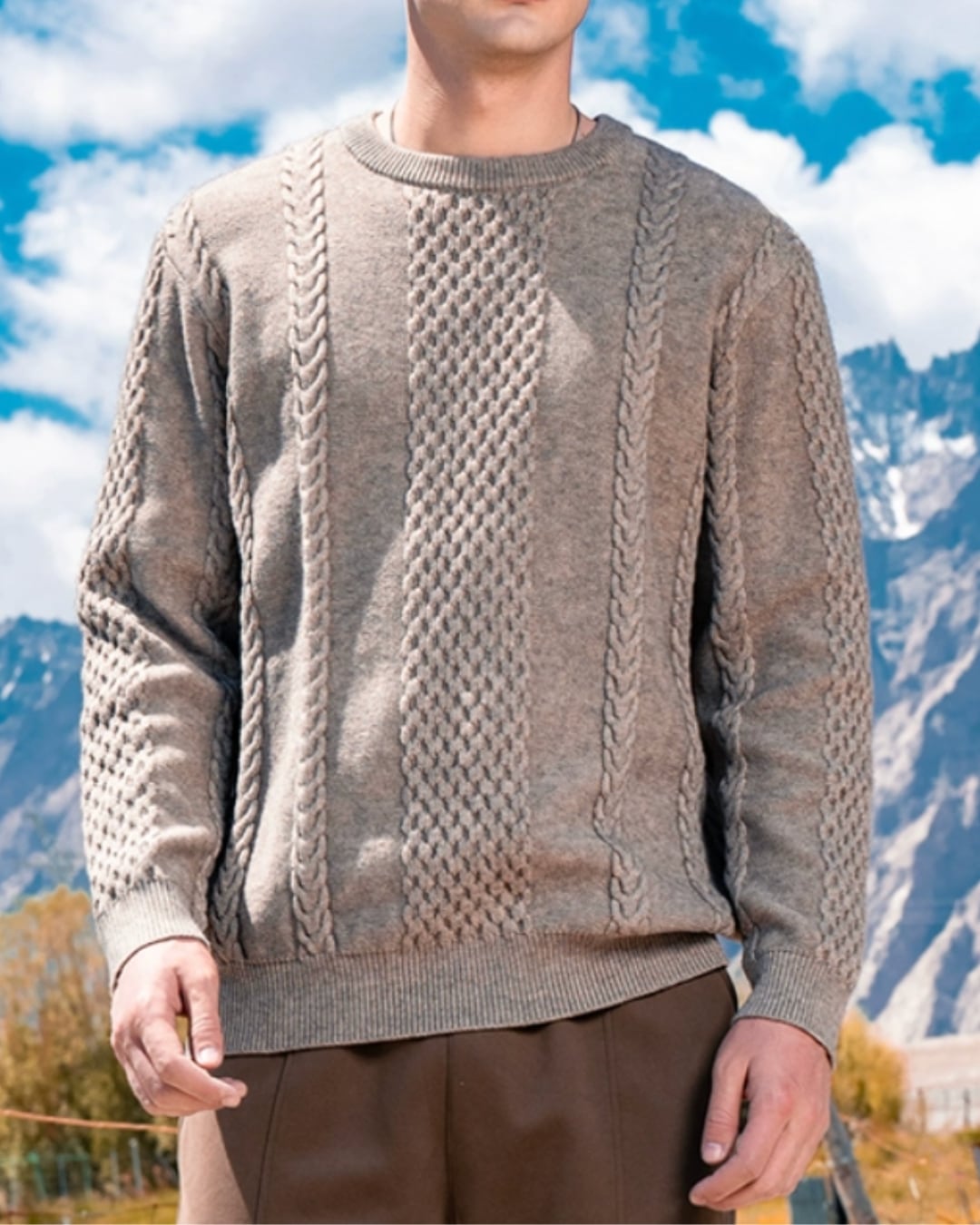 落ち着いた色合いが魅力の長袖ニットプルオーバー。