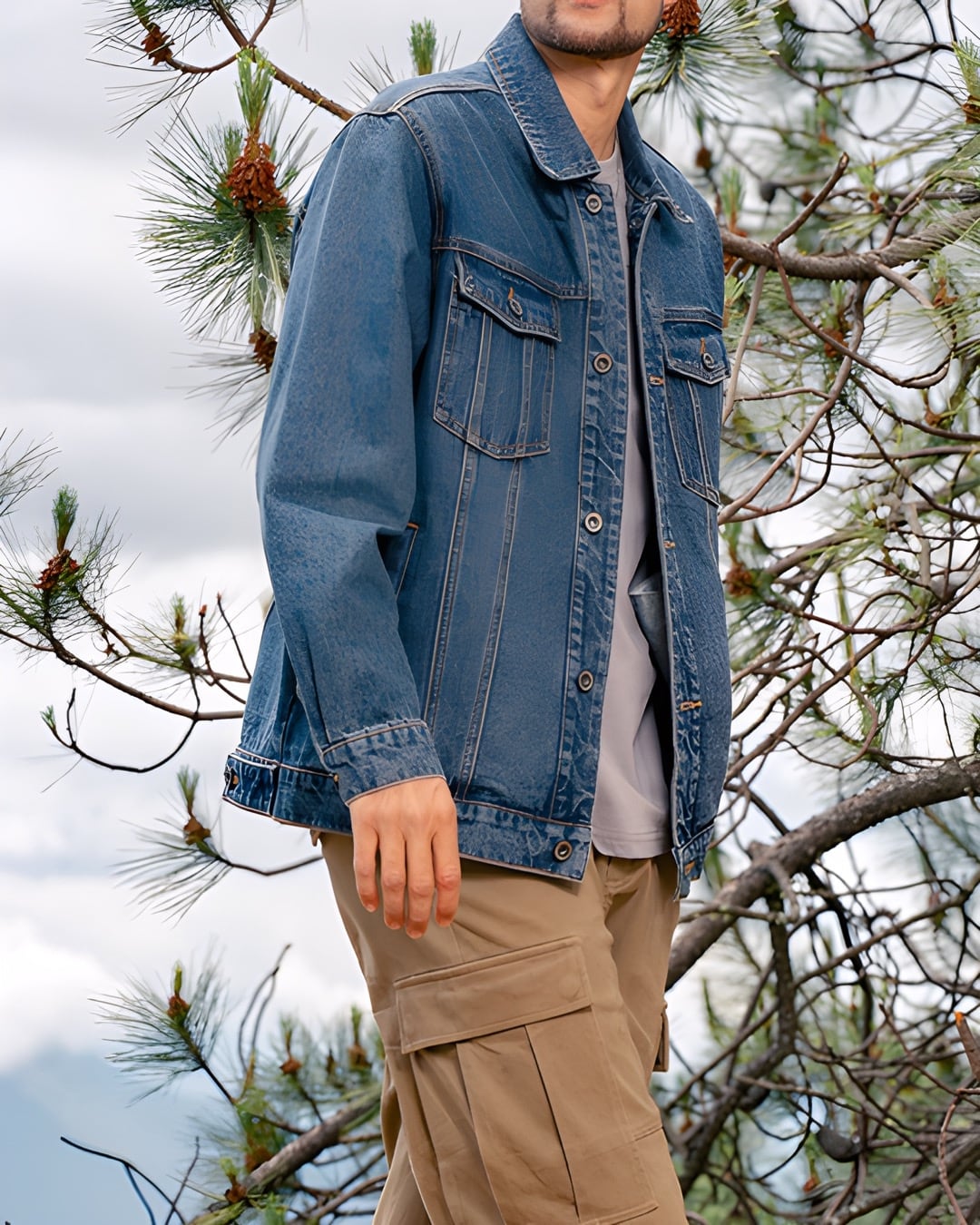 気軽に羽織れる腰丈の長さが魅力。フロントのパッチポケットがアクセントになっており、普段使いにぴったりです。