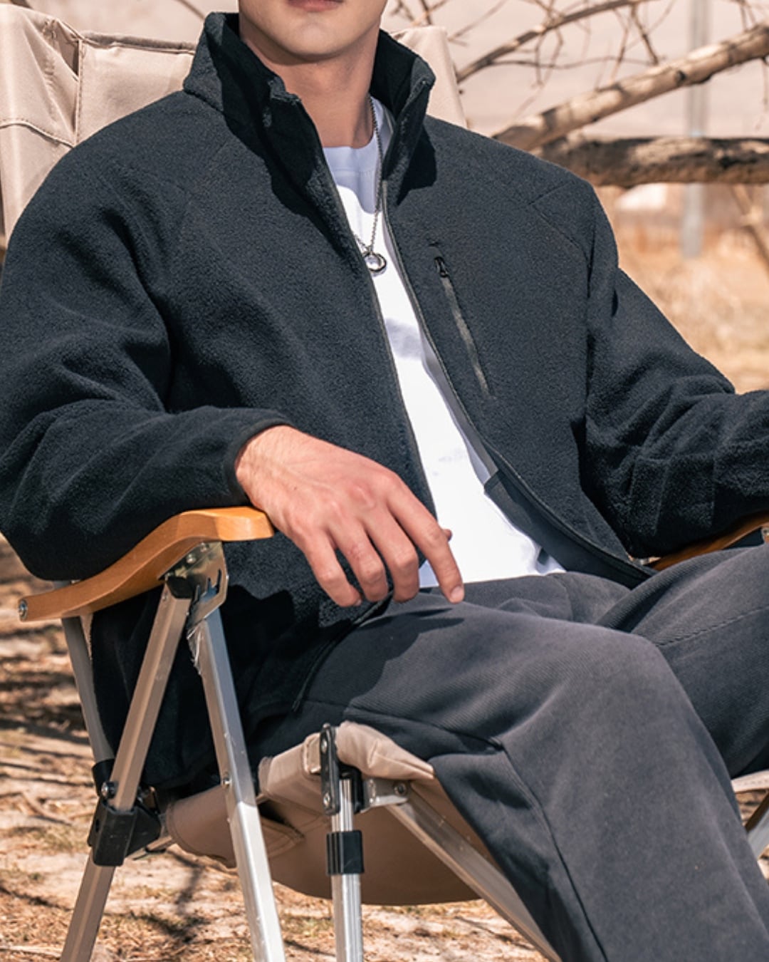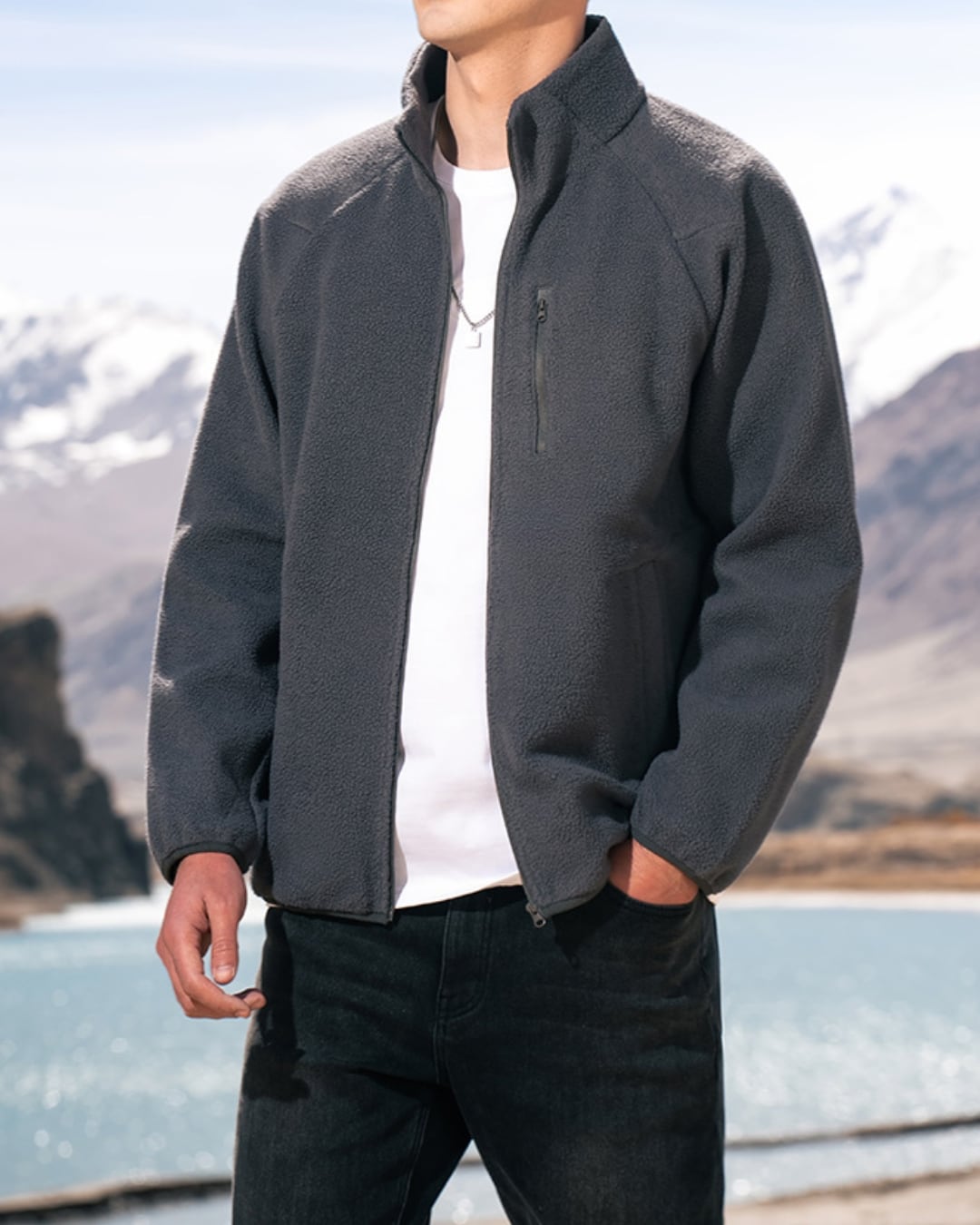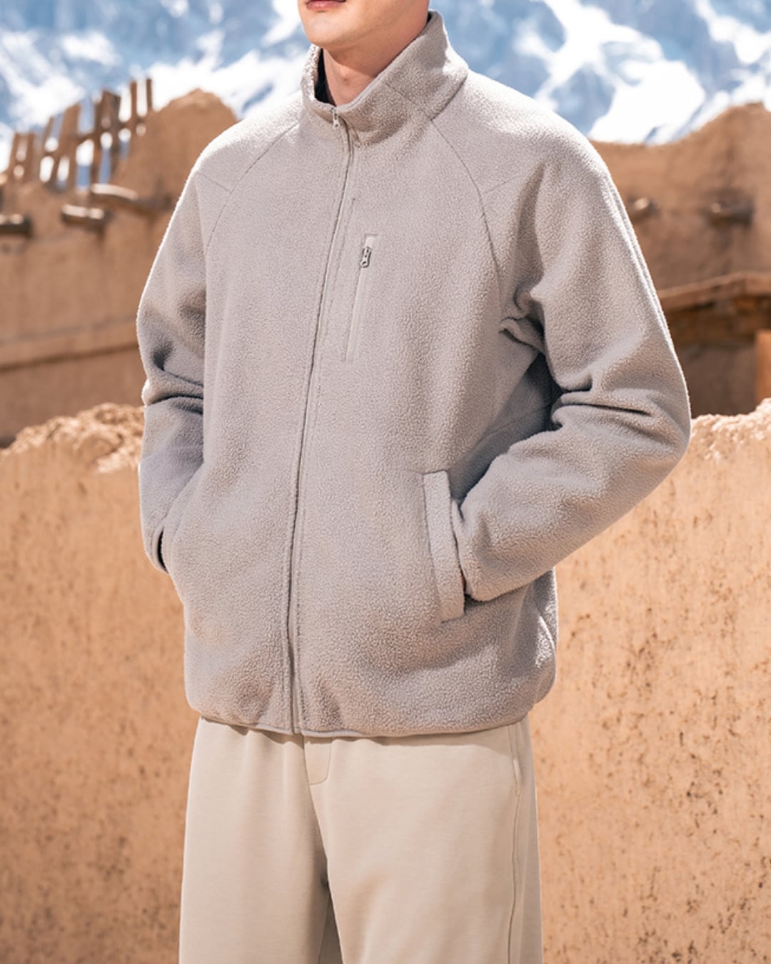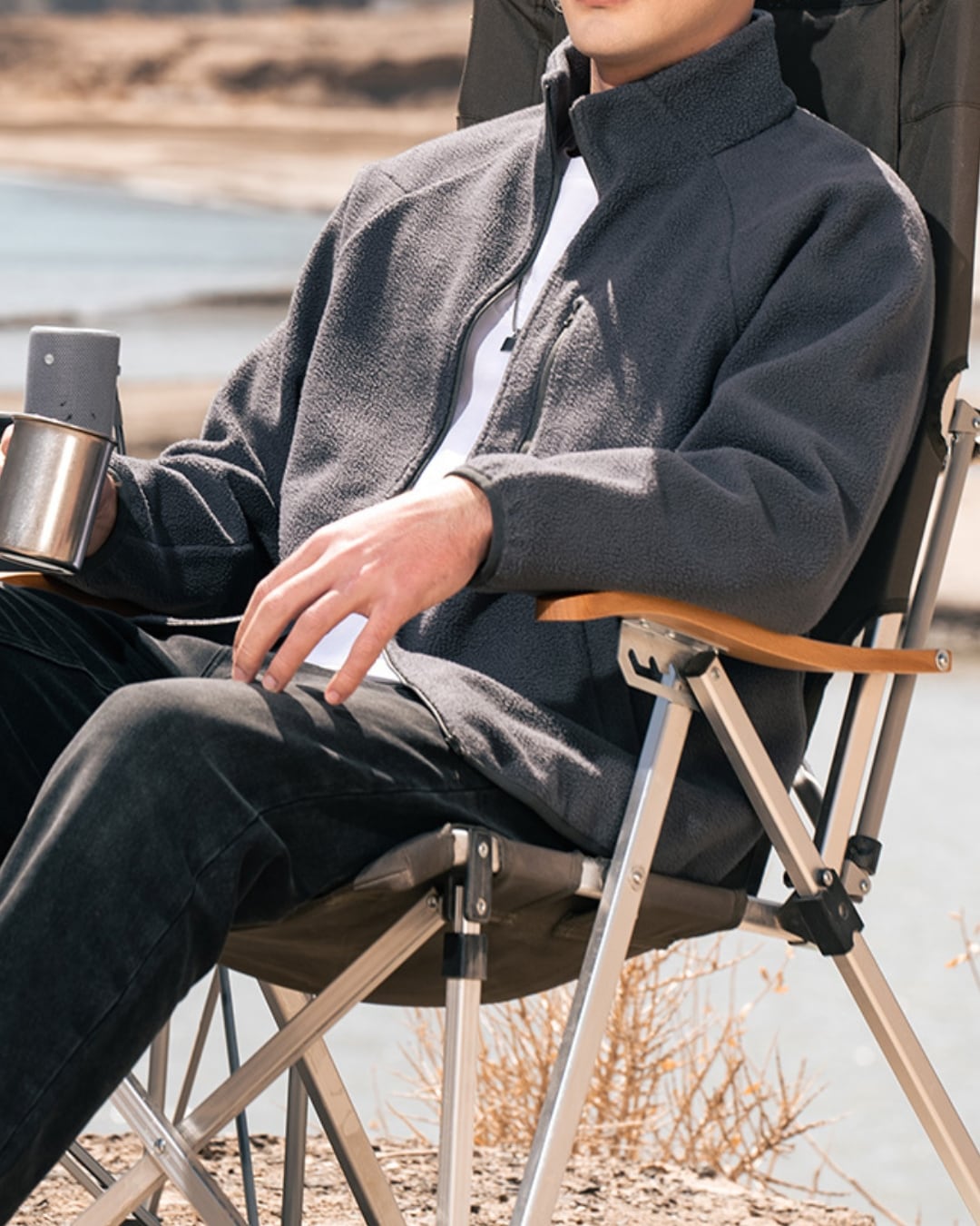 アウトドアシーンに最適な、ジップアップタイプの長袖フリースジャケット。