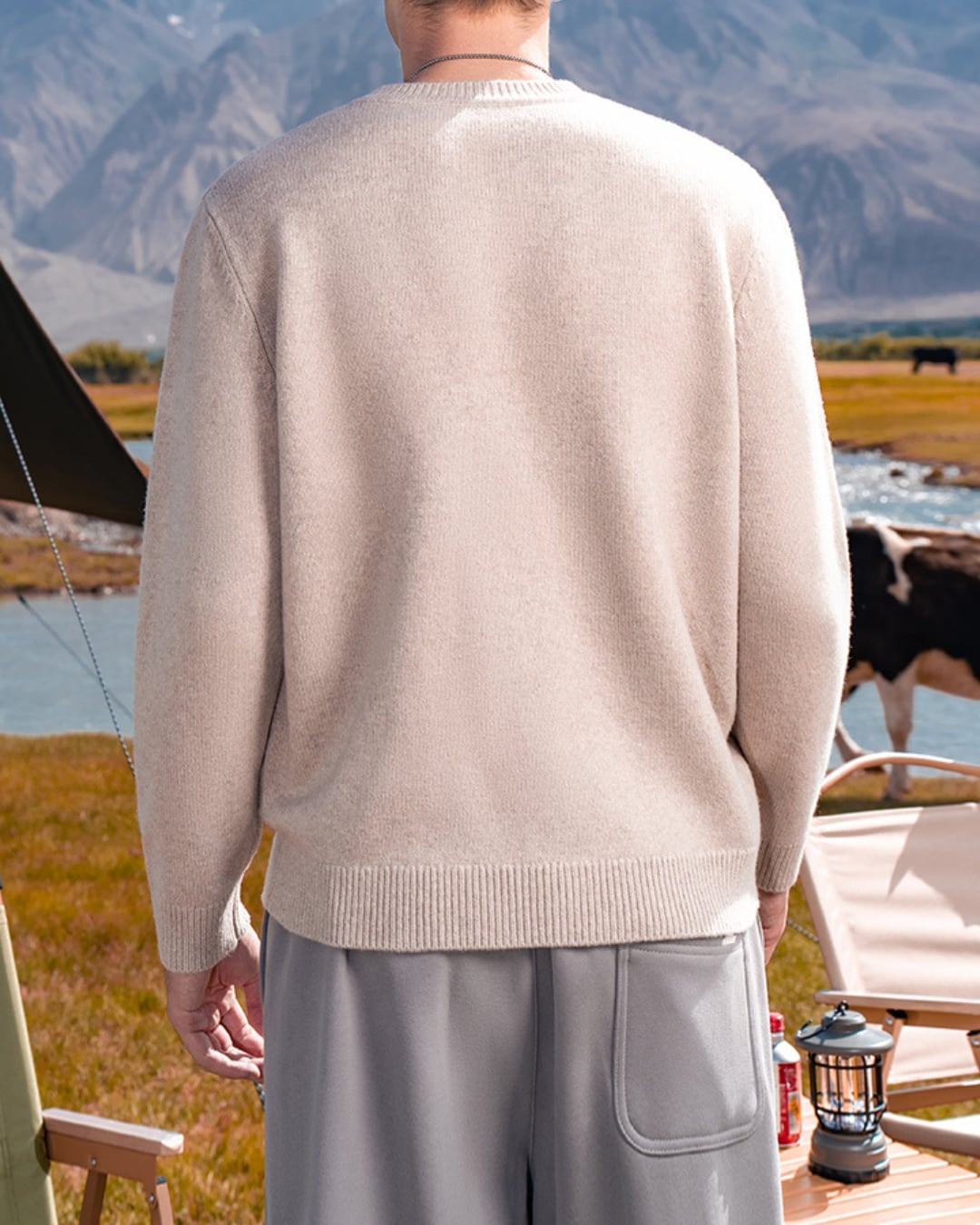 シンプルなデザインで着回し力抜群のカシミア混ウールニット。