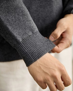 クルーネック仕様で首元はすっきりとまとまり、