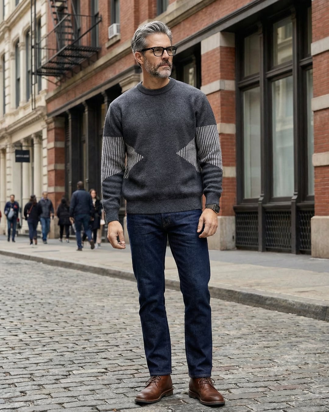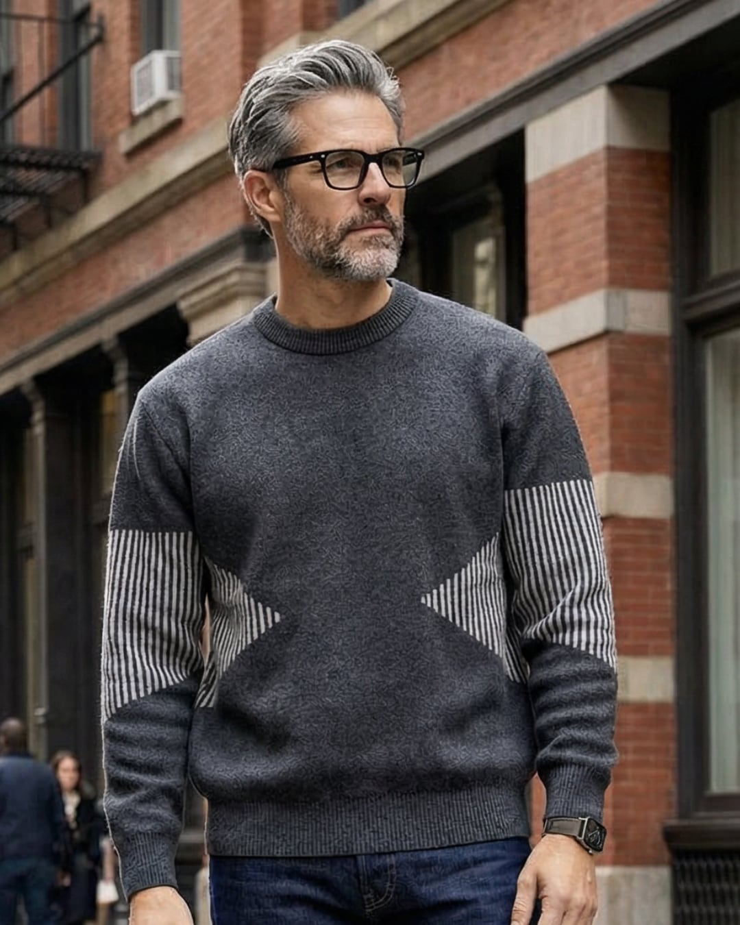 【さりげない柄使いが映える、大人のデザインニット】