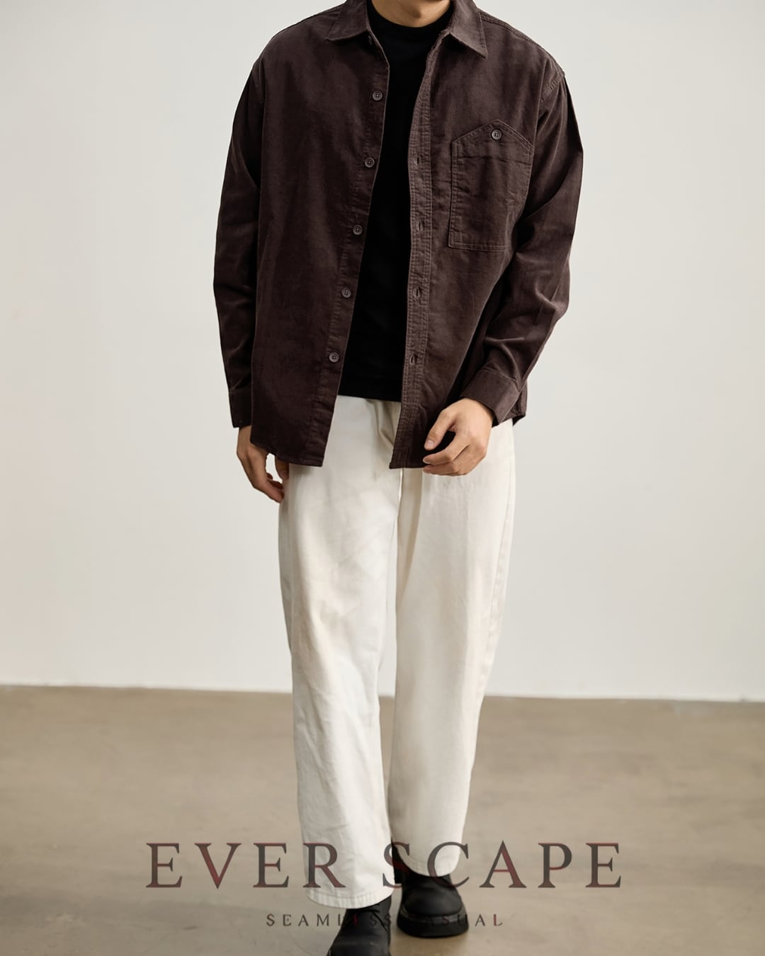 程よい丈感で、様々な着こなしが楽しめるコーデュロイシャツ。