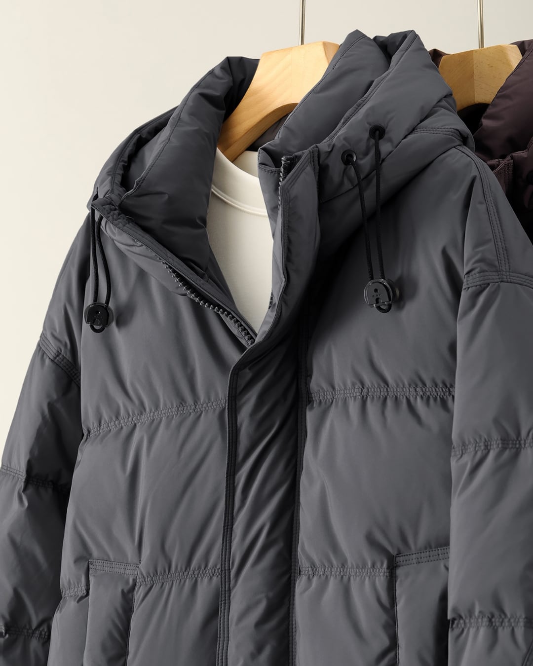 暖かさとスタイルの両立を叶えるミドル丈ダウンジャケット。