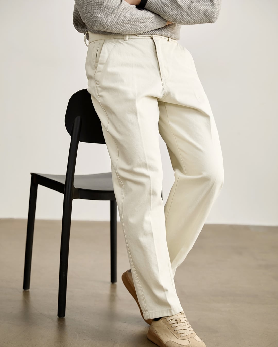 カジュアルながらも洗練された印象を与えるストレートレギュラーライズパンツ。