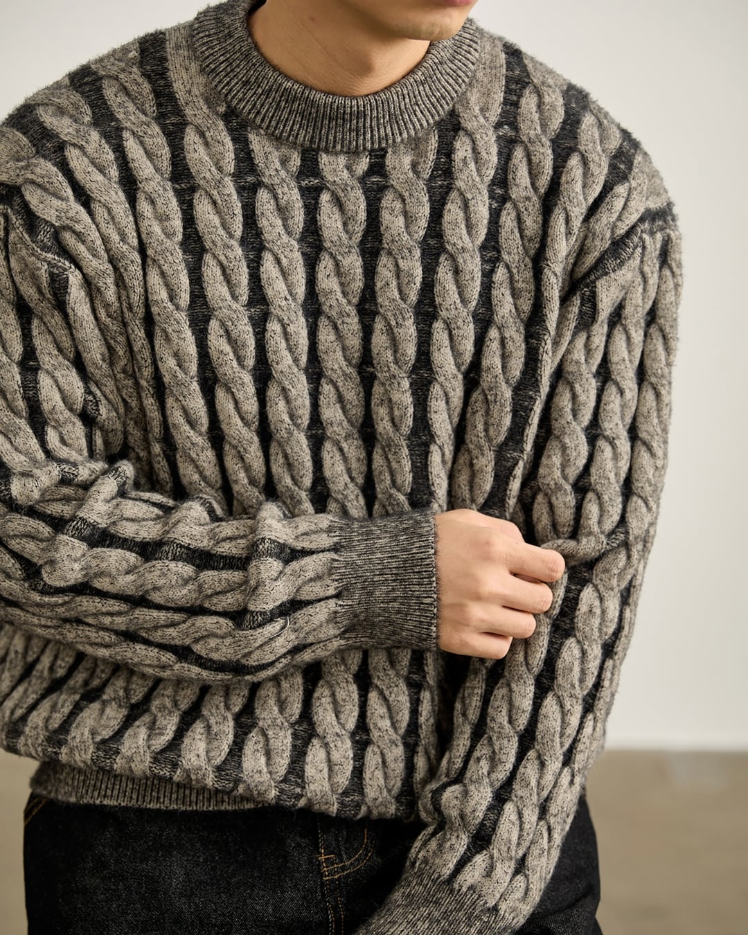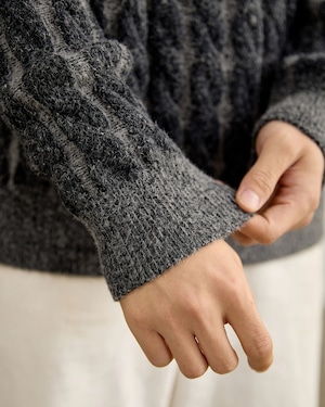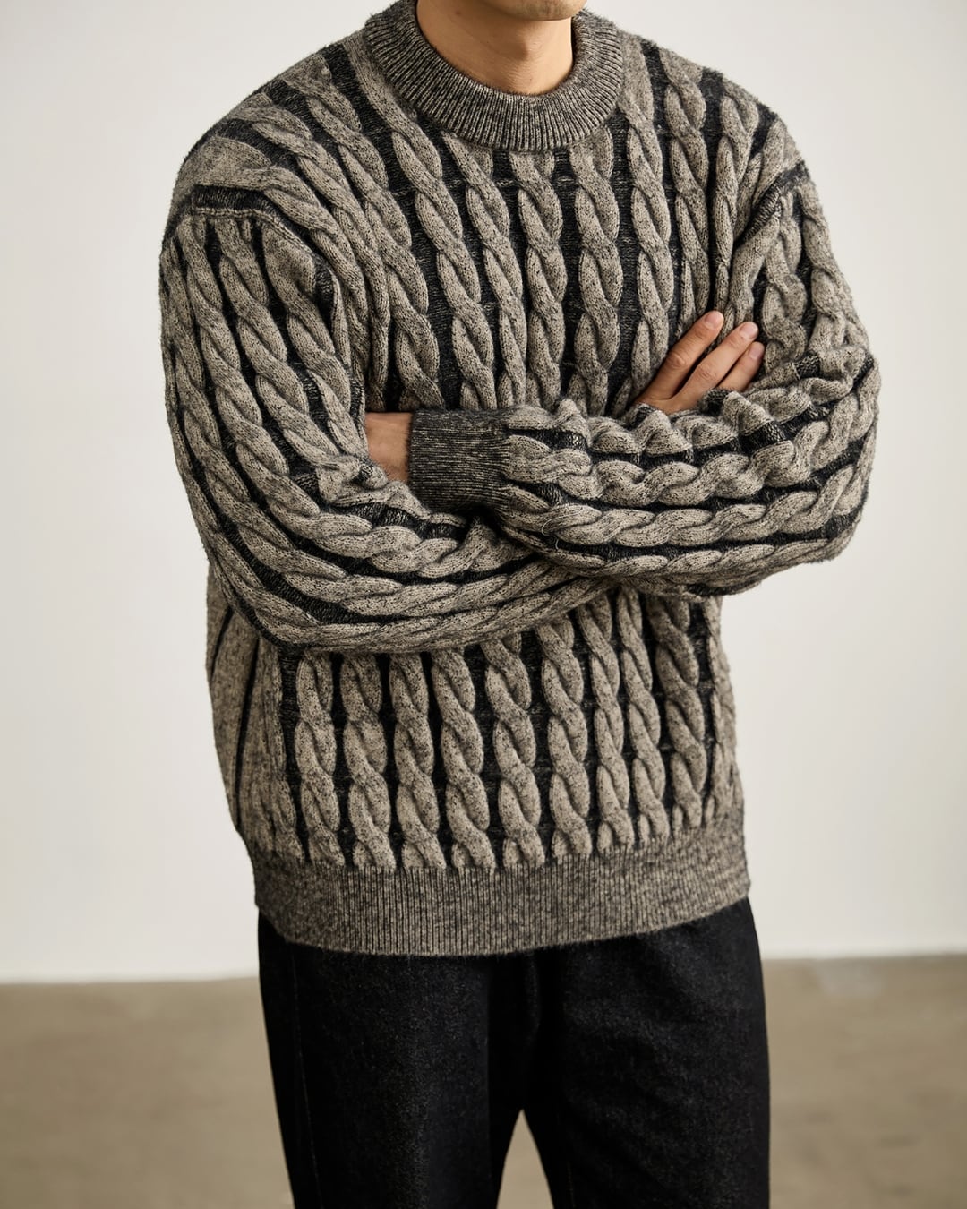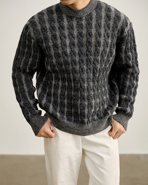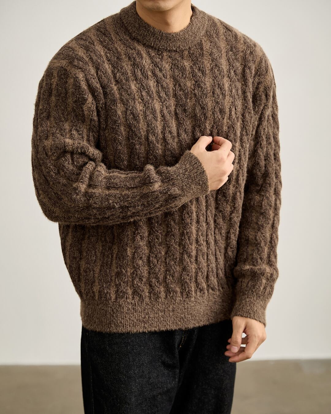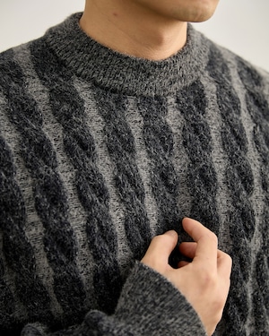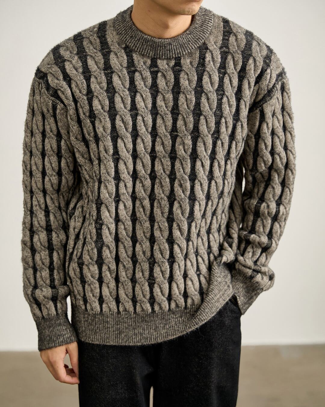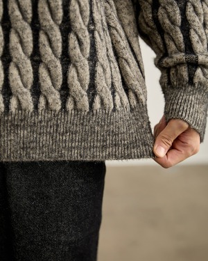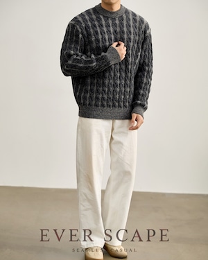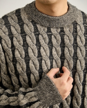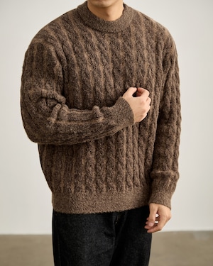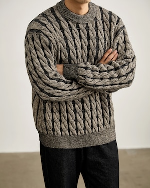 クラシック ケーブル編みクルーネックニット 3色 A0031