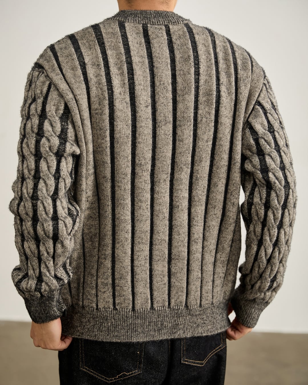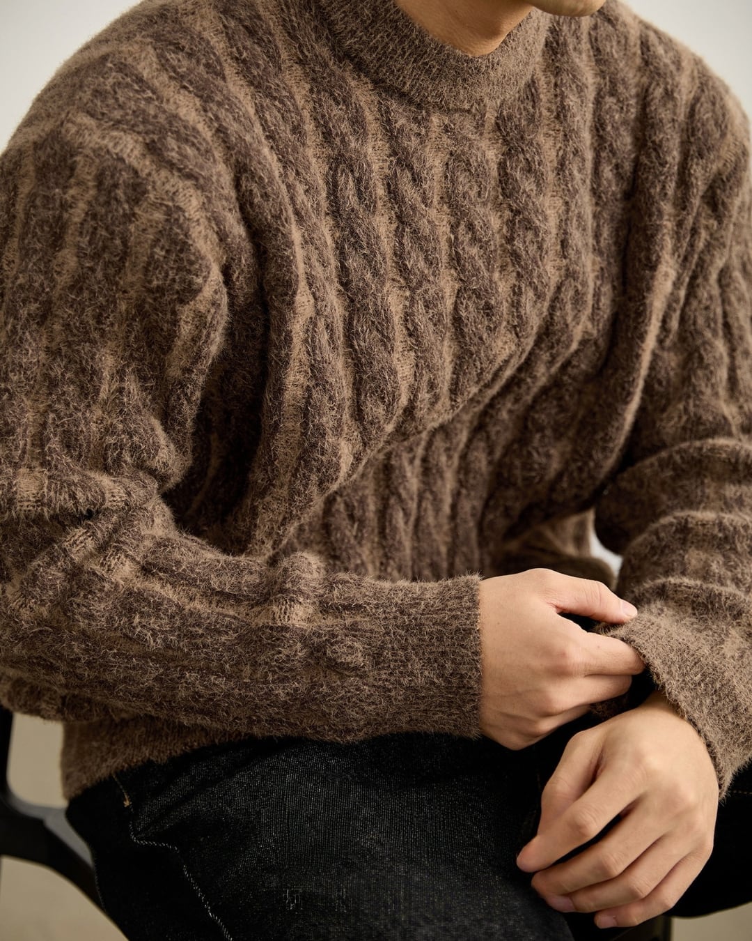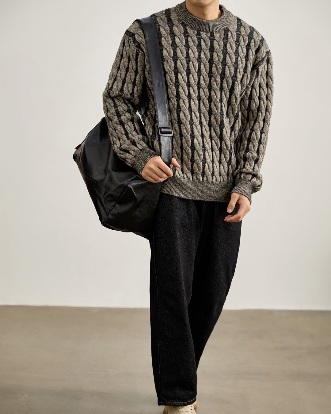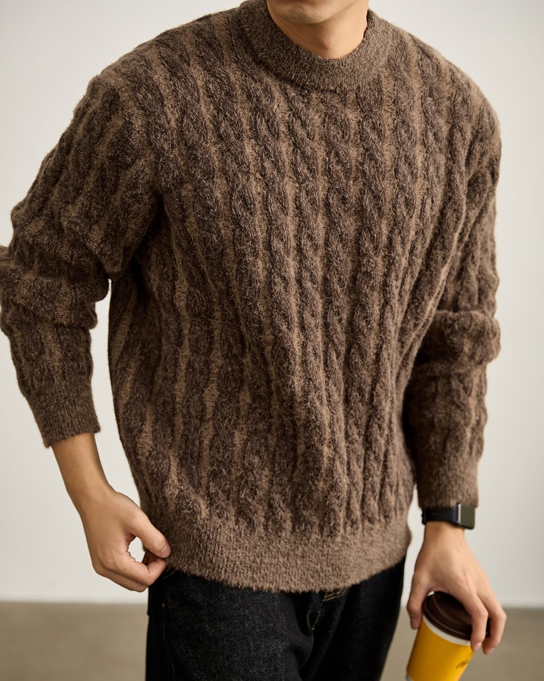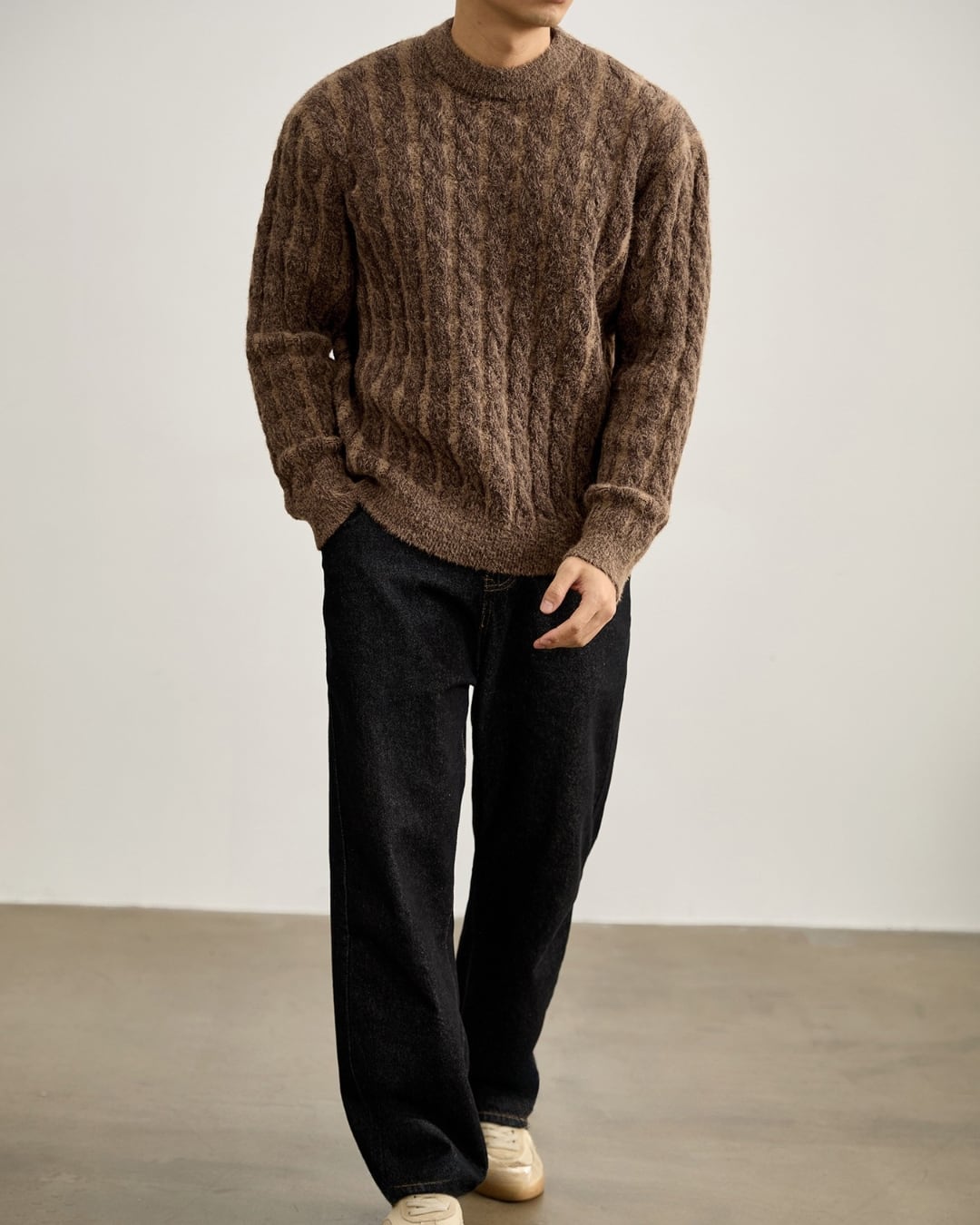クラシック ケーブル編みクルーネックニット 3色 A0031