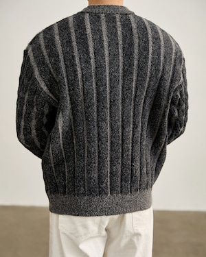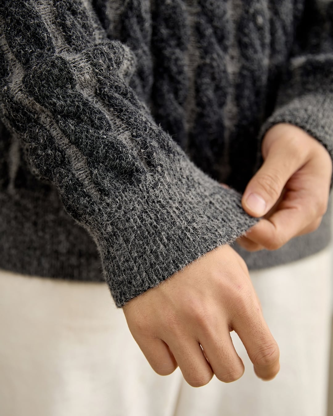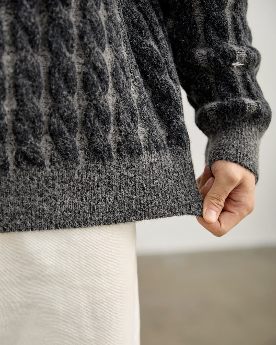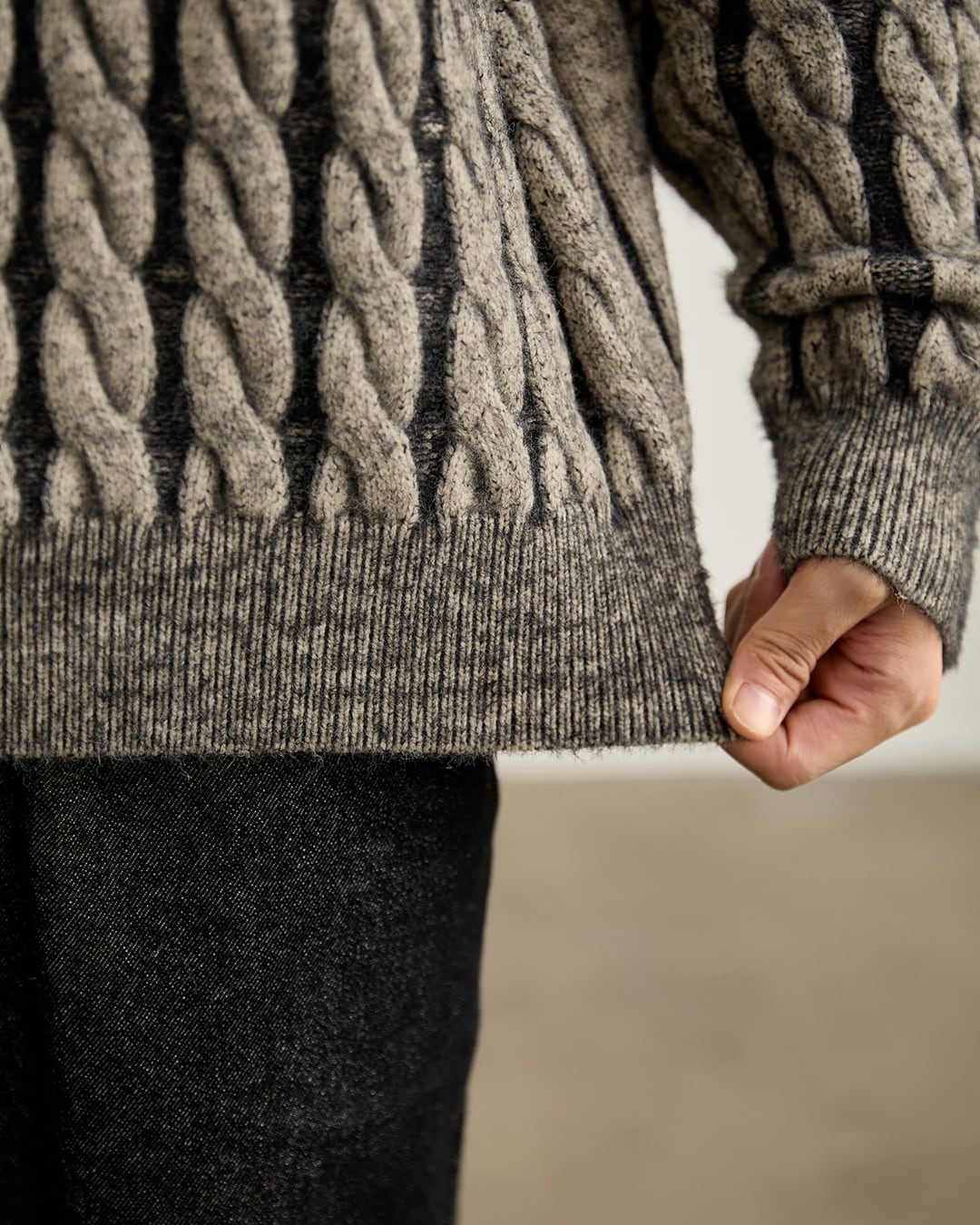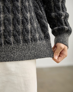 立体感のある編み柄が目を引く、存在感のあるニットトップス。