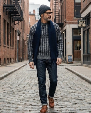 落ち着いた配色と程よいデザイン性が、シンプルながらも雰囲気のある一着に仕上がっています。