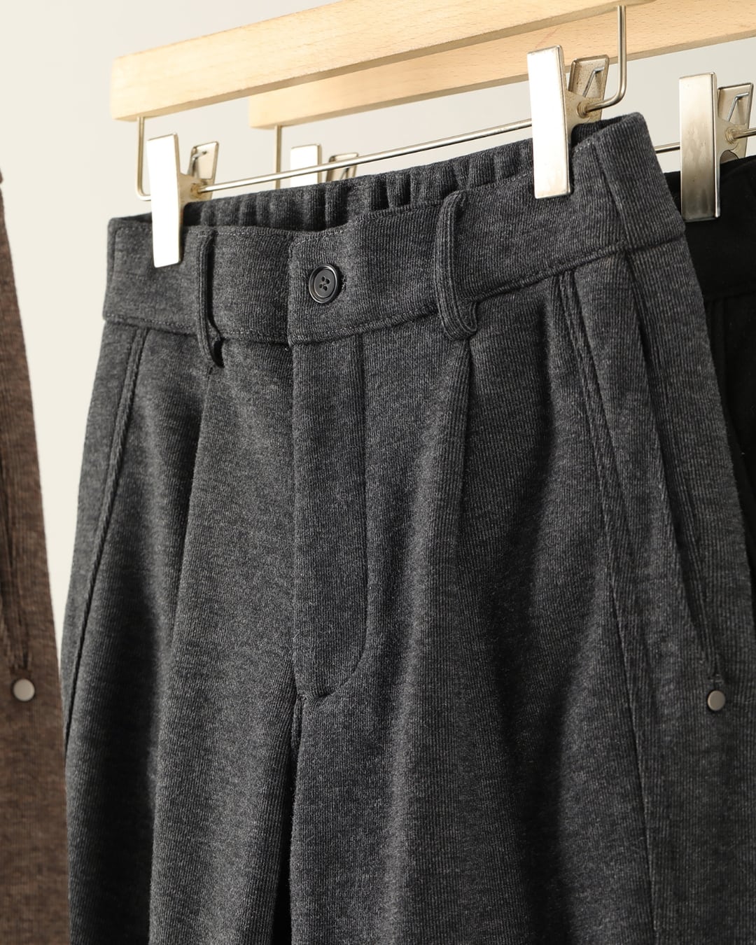 きれいめにもカジュアルにも合わせやすい、万能パンツ。