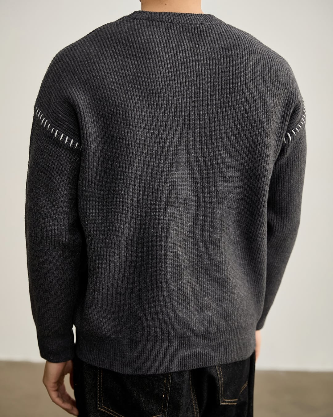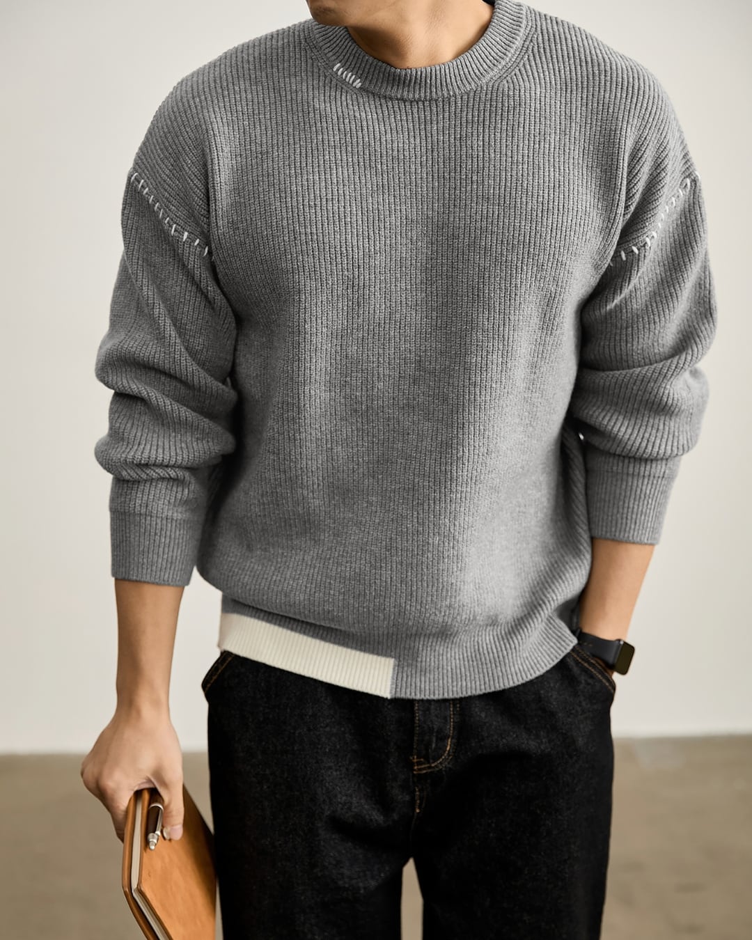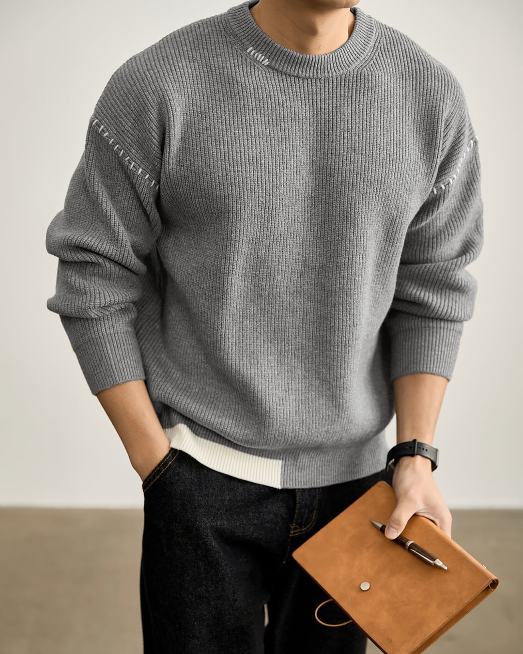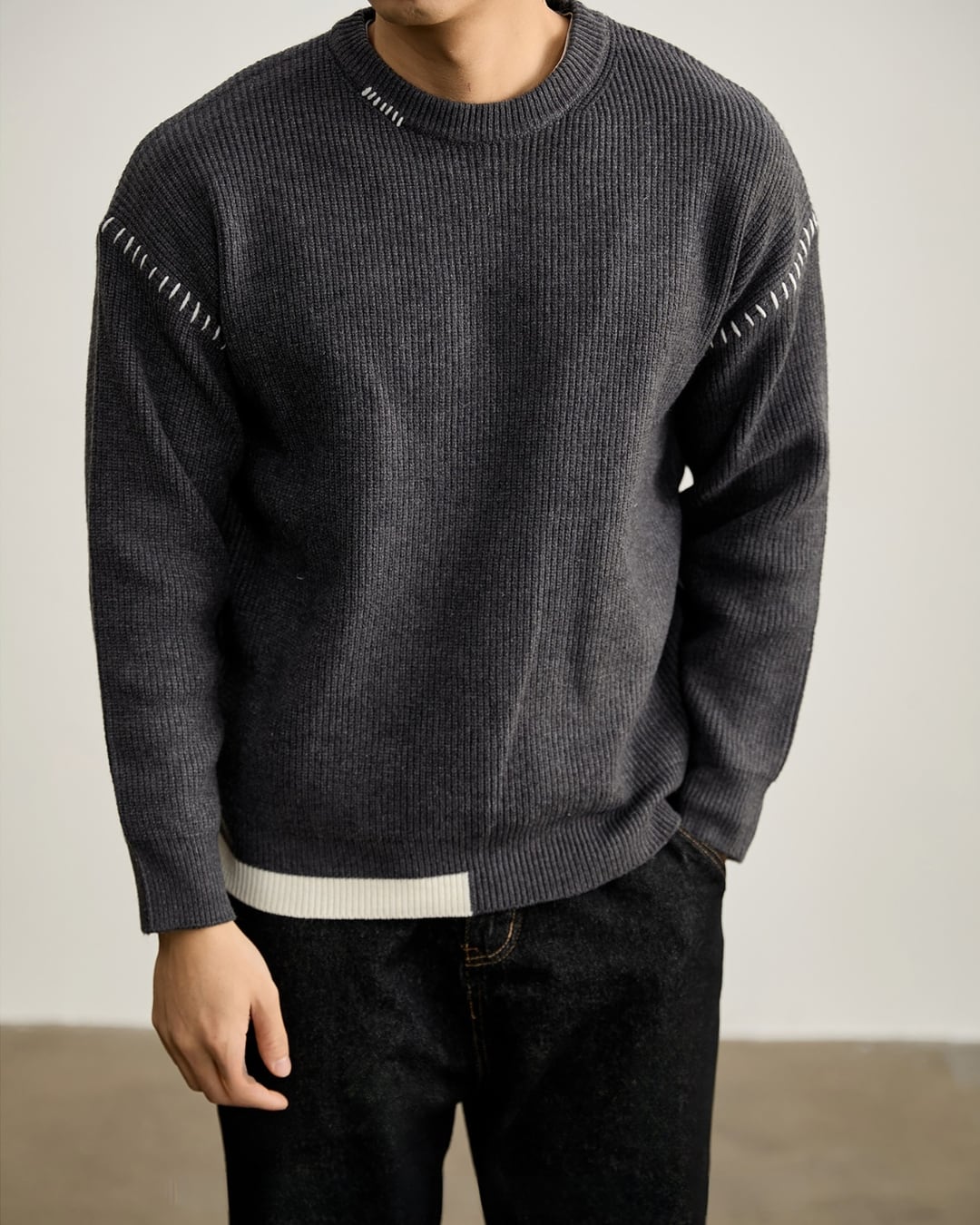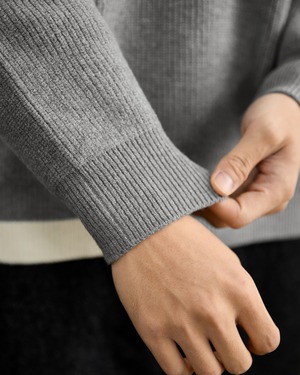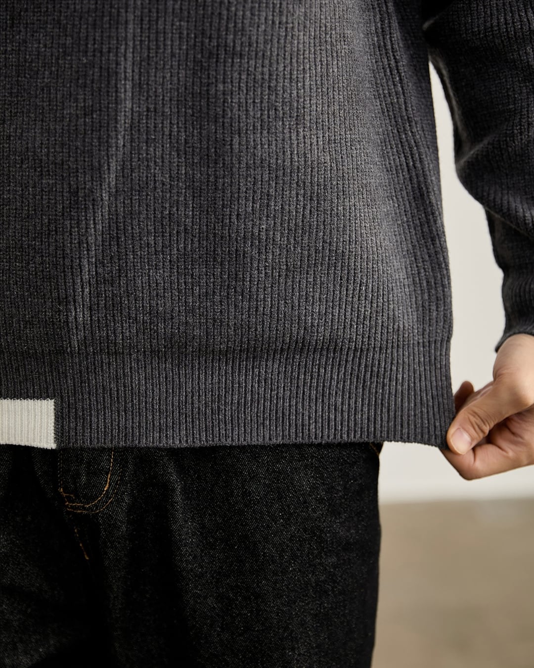 【さりげないステッチが個性を添える、リブ編みクルーネックニット】