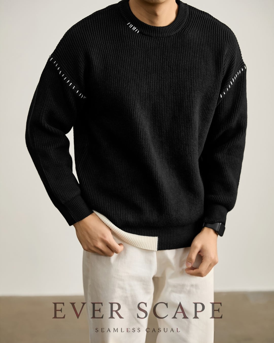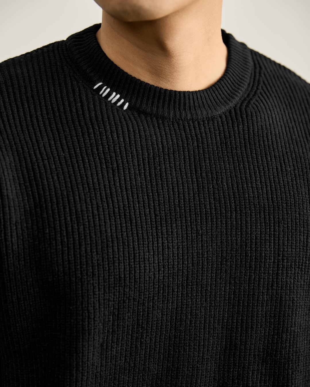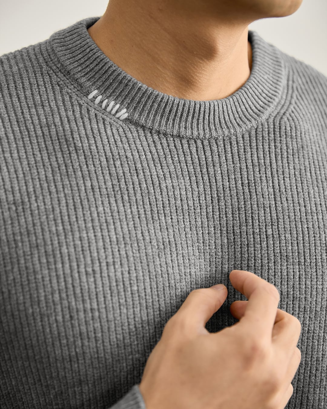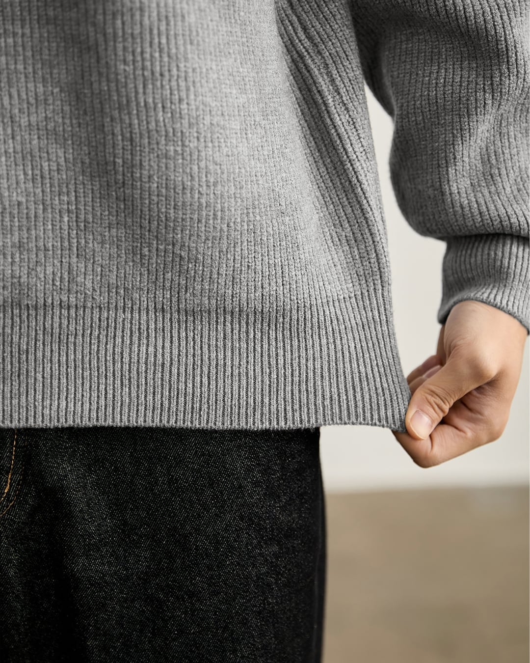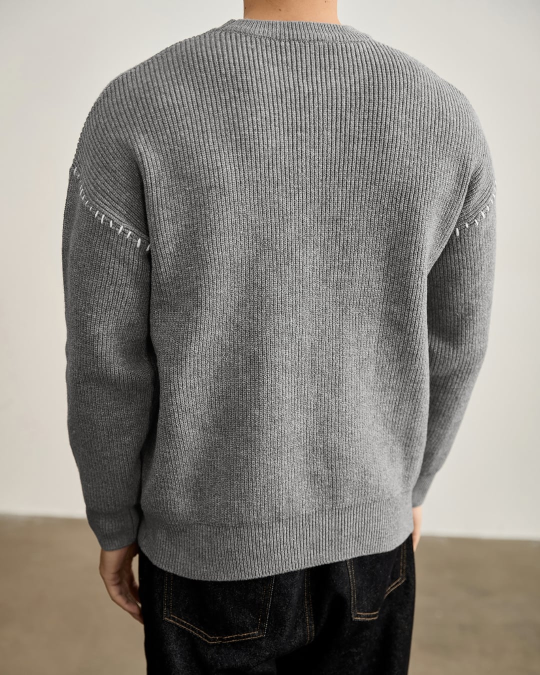 【さりげないステッチが個性を添える、リブ編みクルーネックニット】
