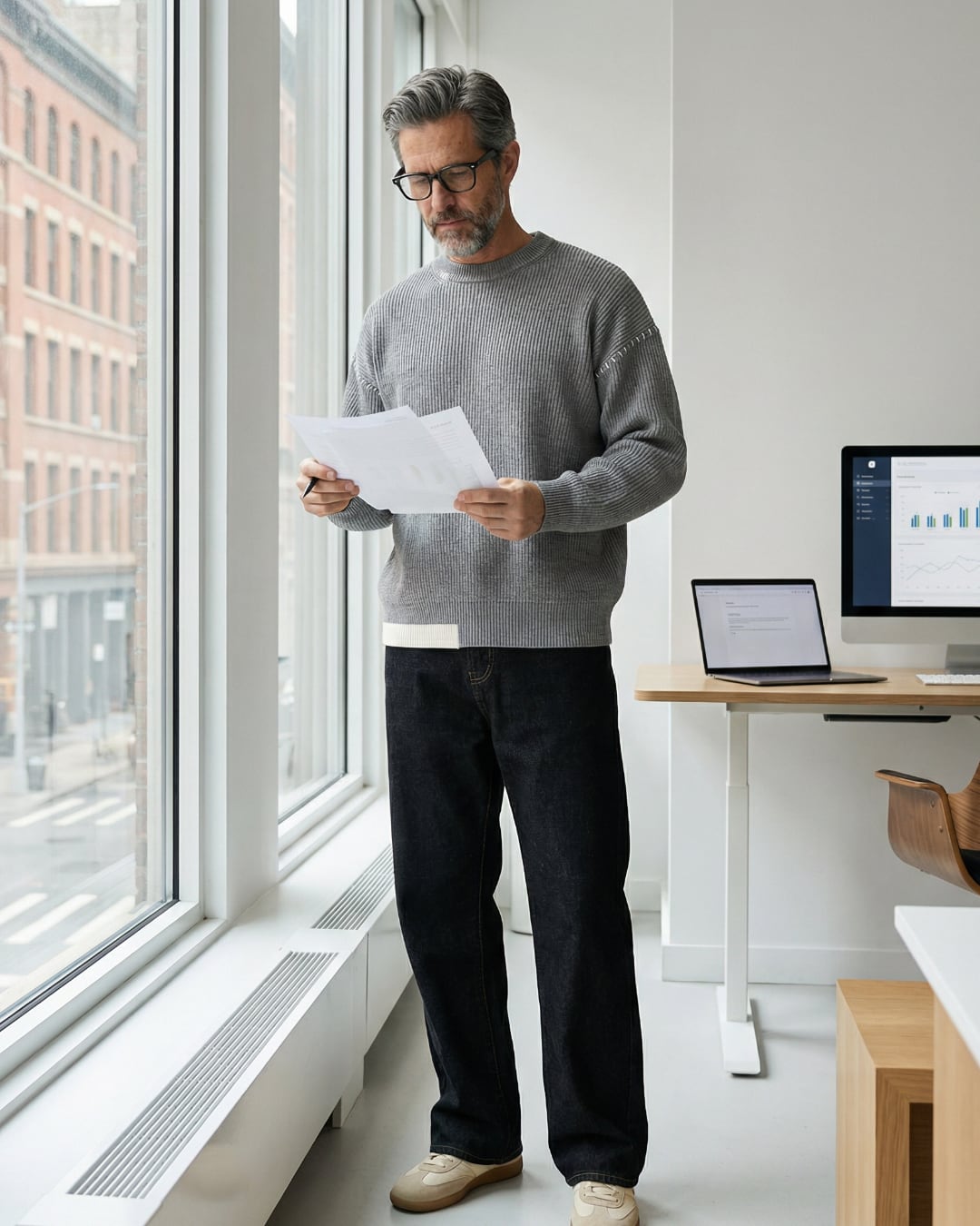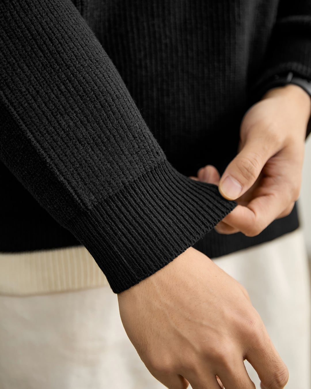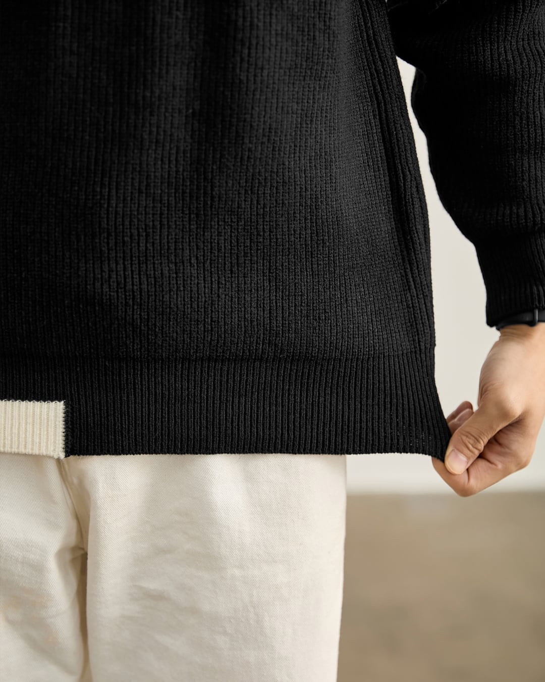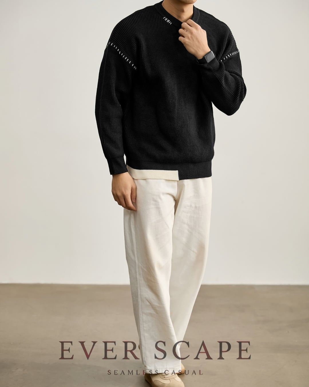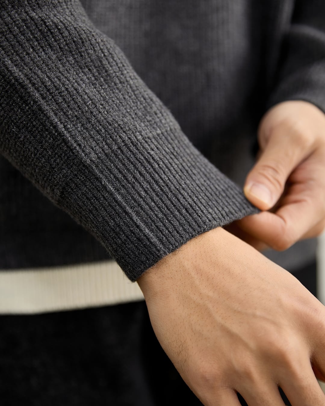 【さりげないステッチが個性を添える、リブ編みクルーネックニット】