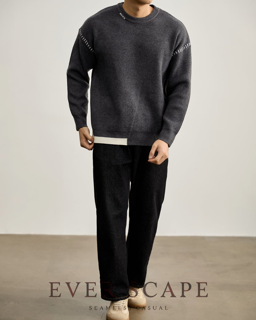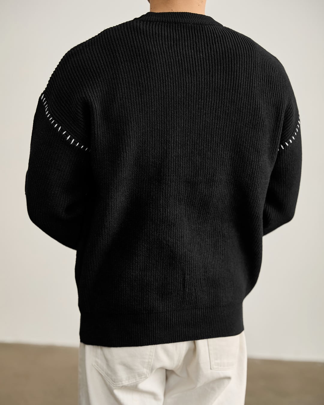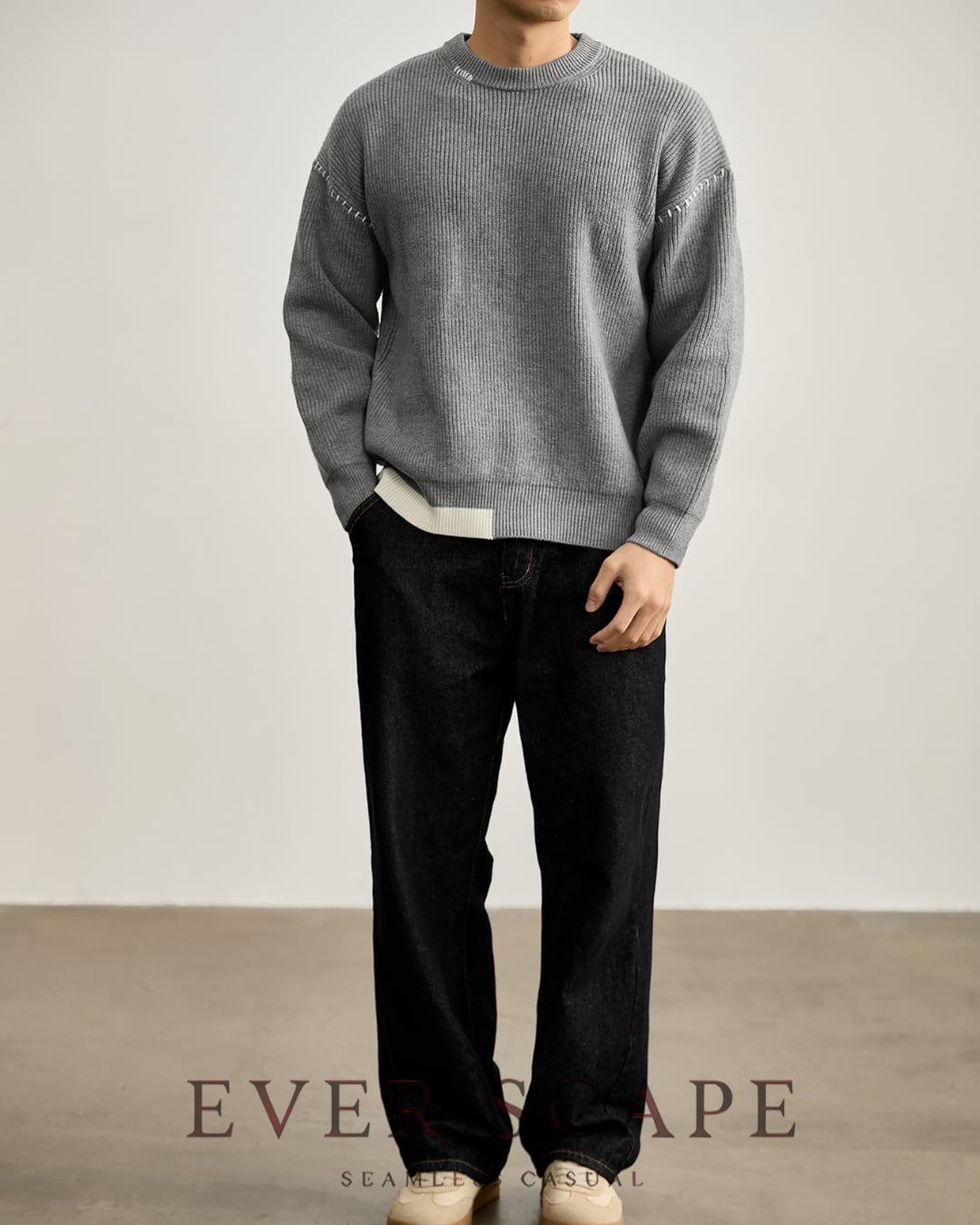 クラシック ステッチデザインクルーネックニット 3色 A0040