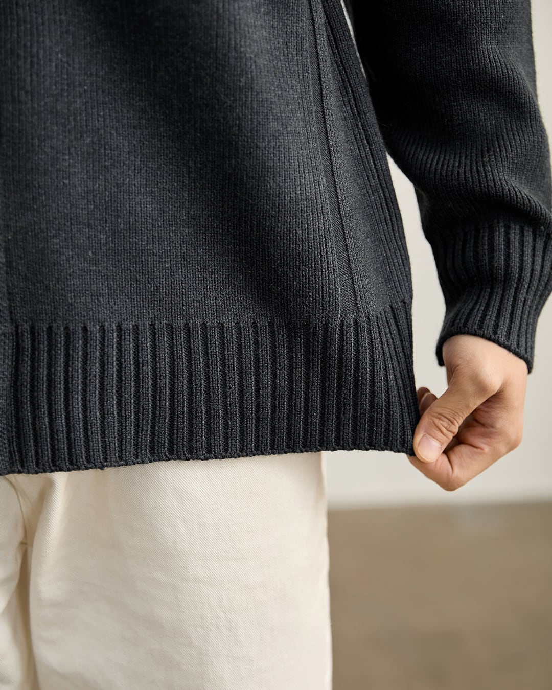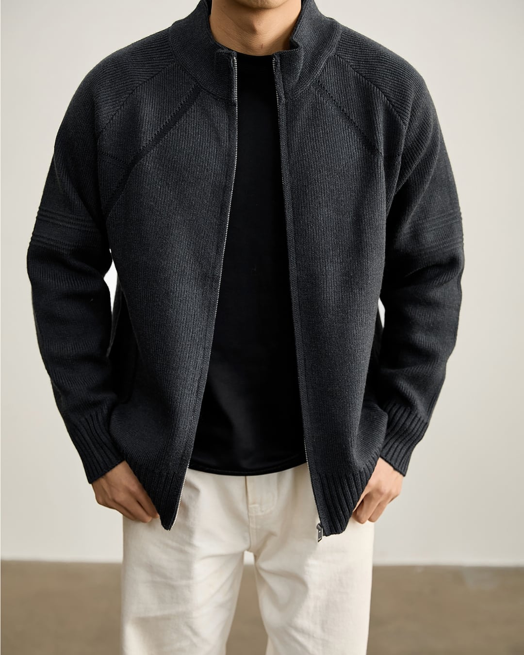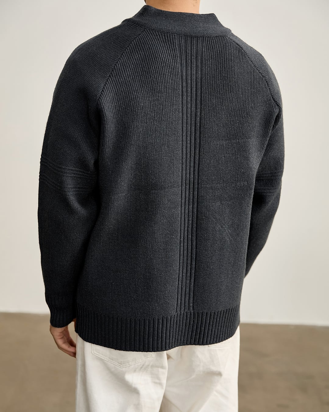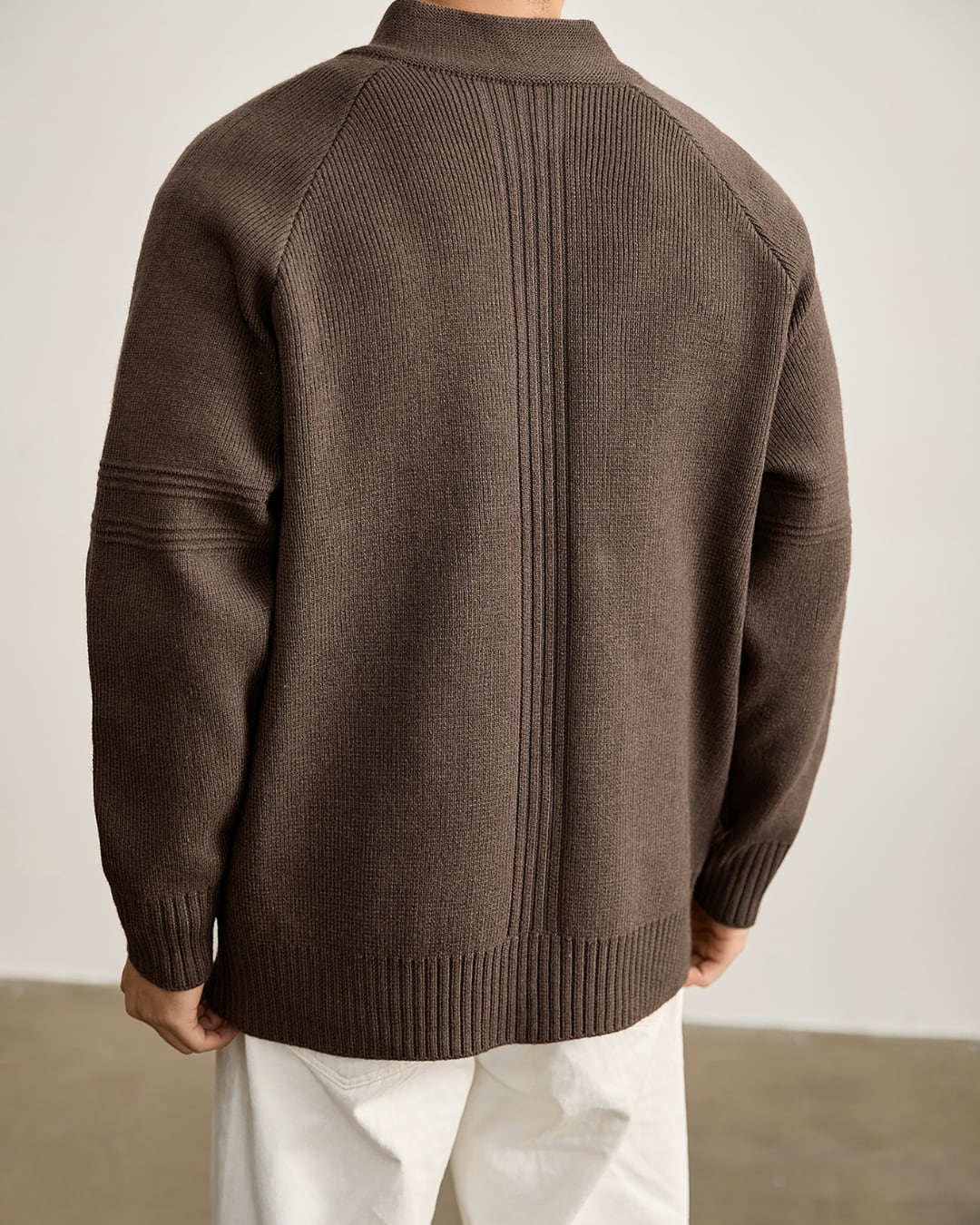 ニットならではの柔らかな着心地と、アウター感覚で使える実用性を両立しています。