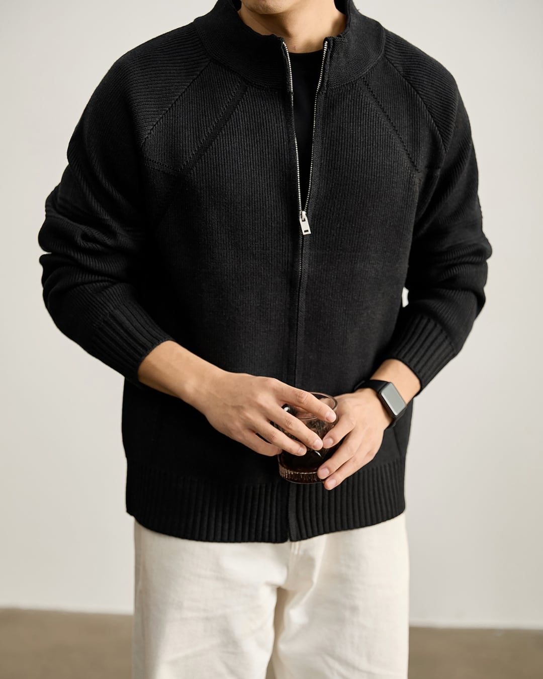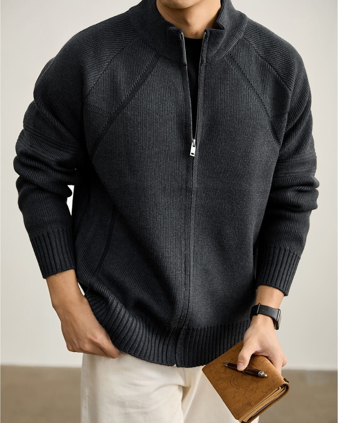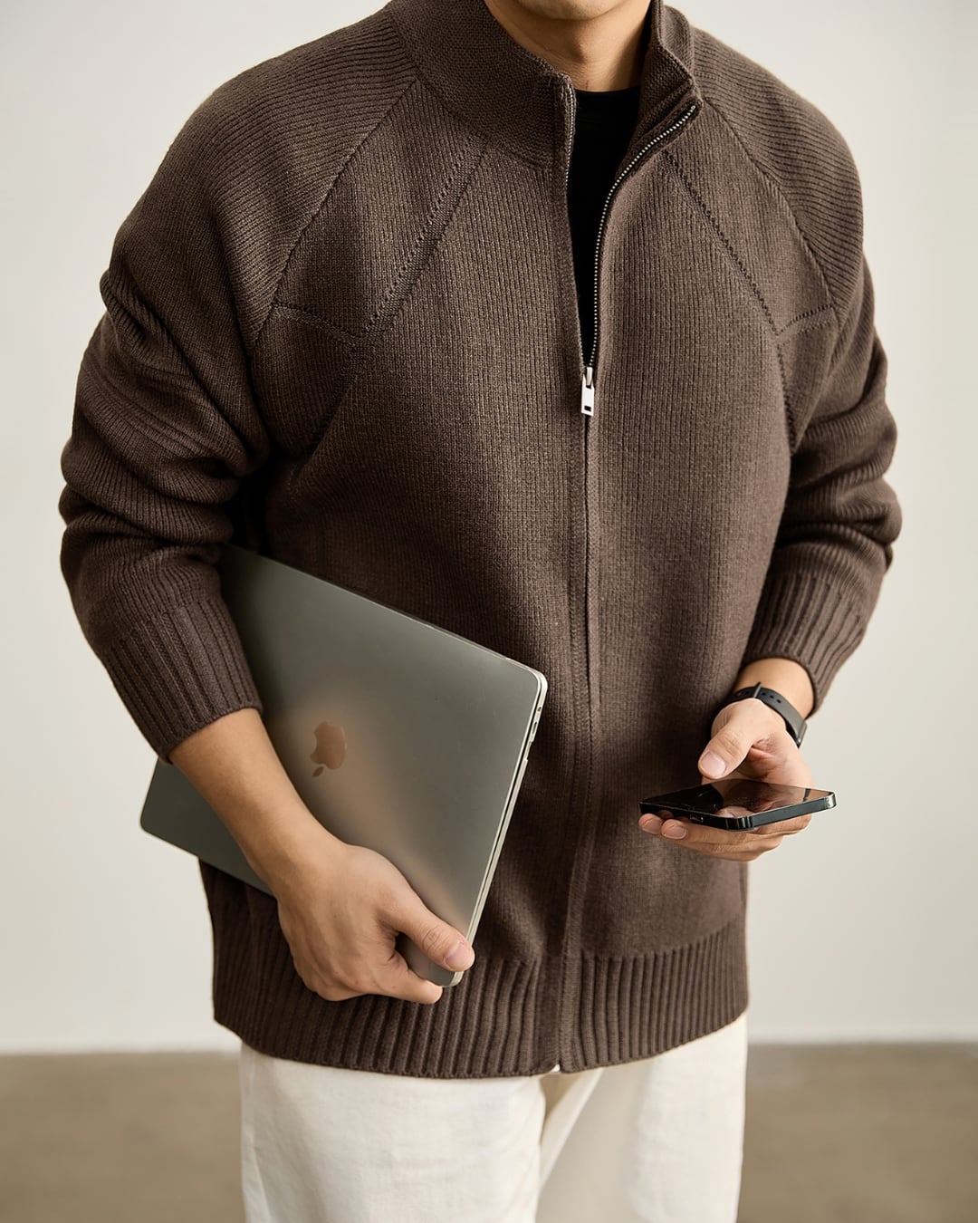 ニットならではの柔らかな着心地と、アウター感覚で使える実用性を両立しています。