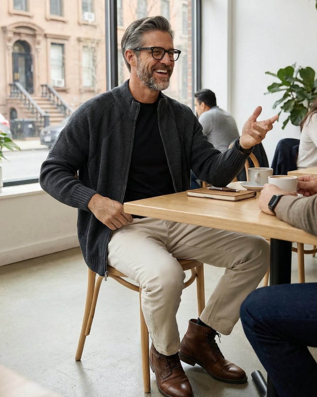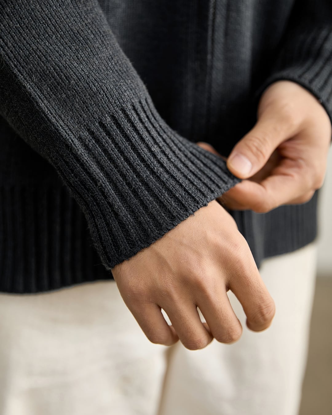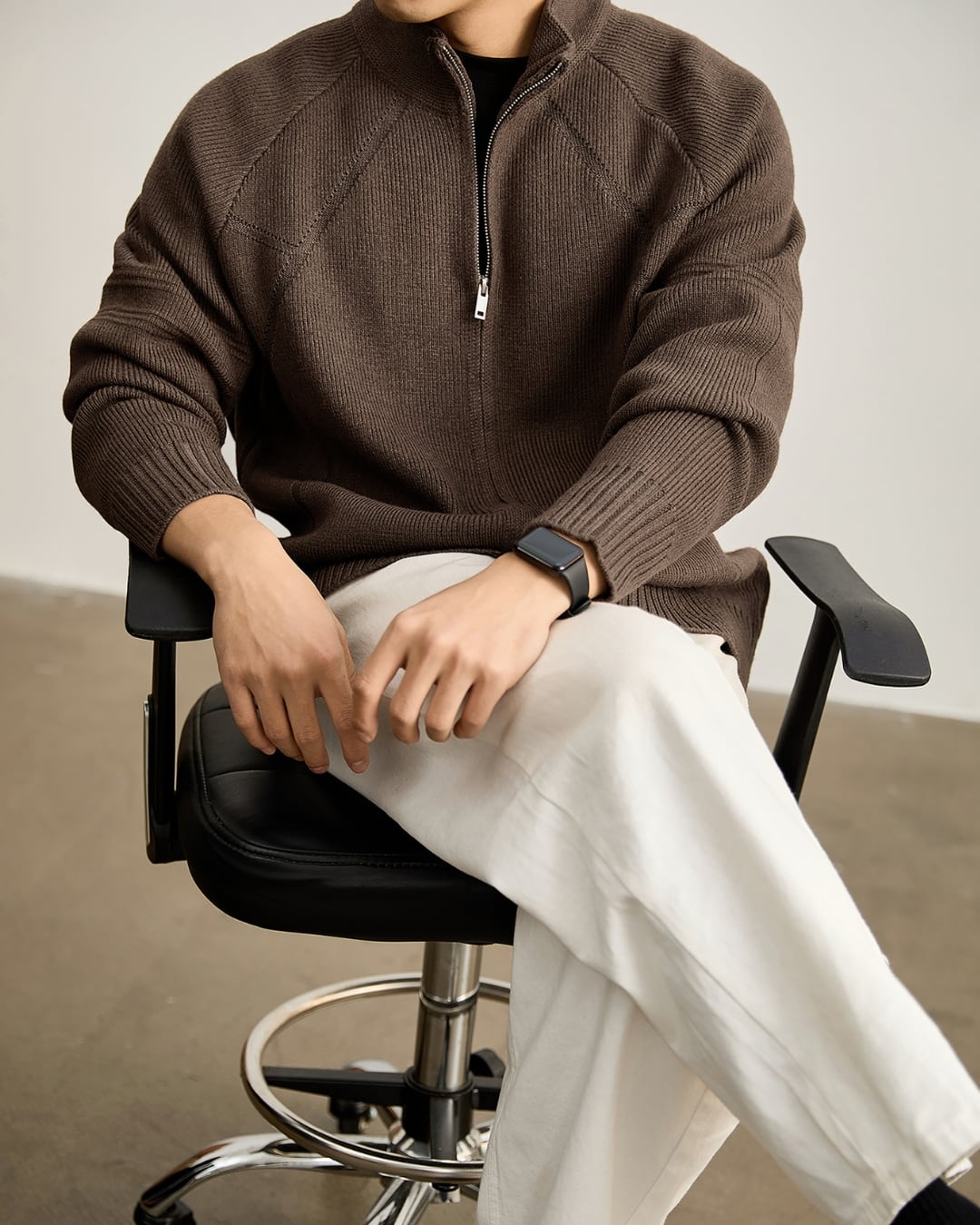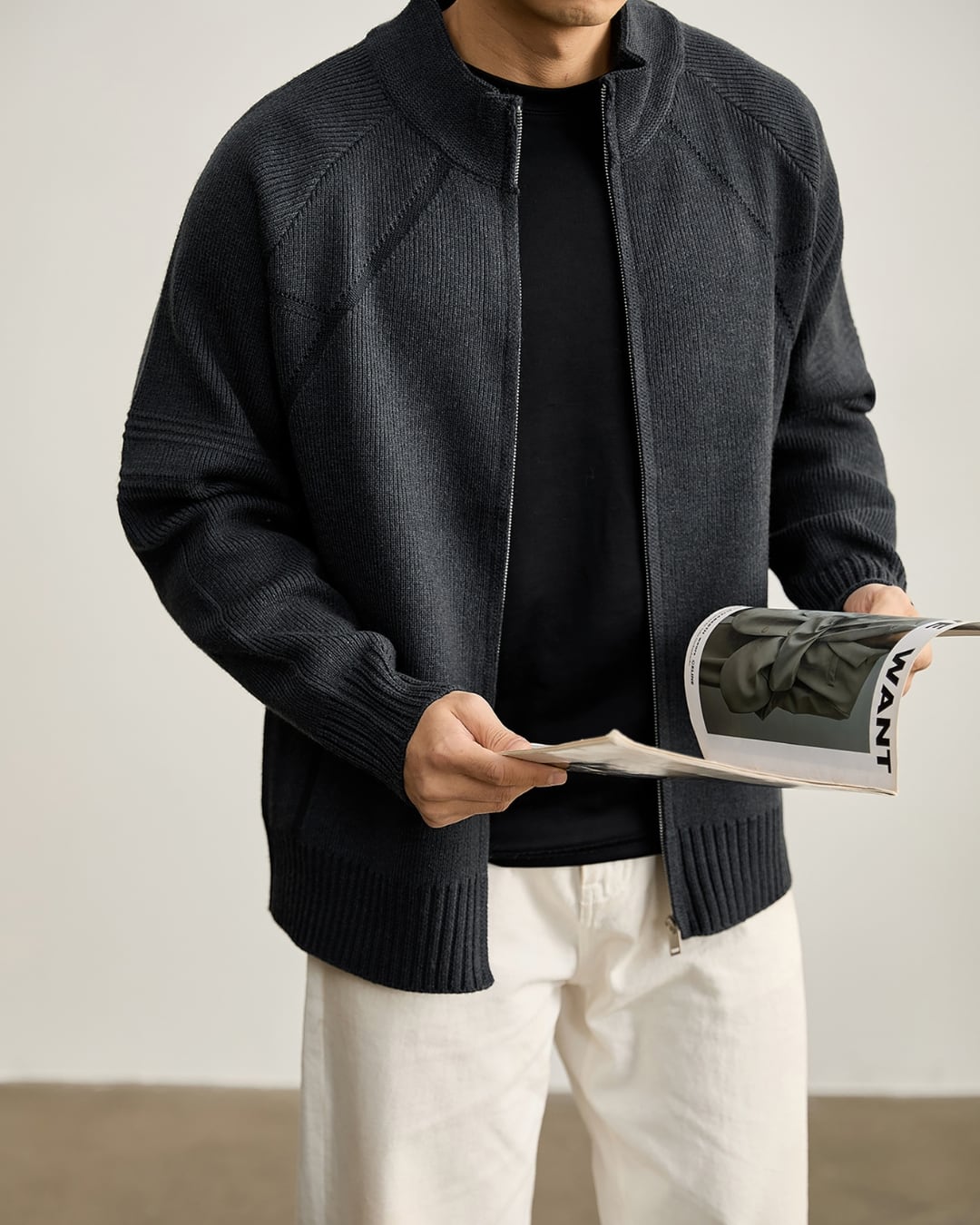 ニットならではの柔らかな着心地と、アウター感覚で使える実用性を両立しています。
