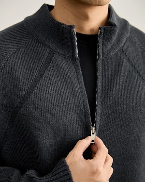【立体的な編み地が映える、ジップアップニットブルゾン】