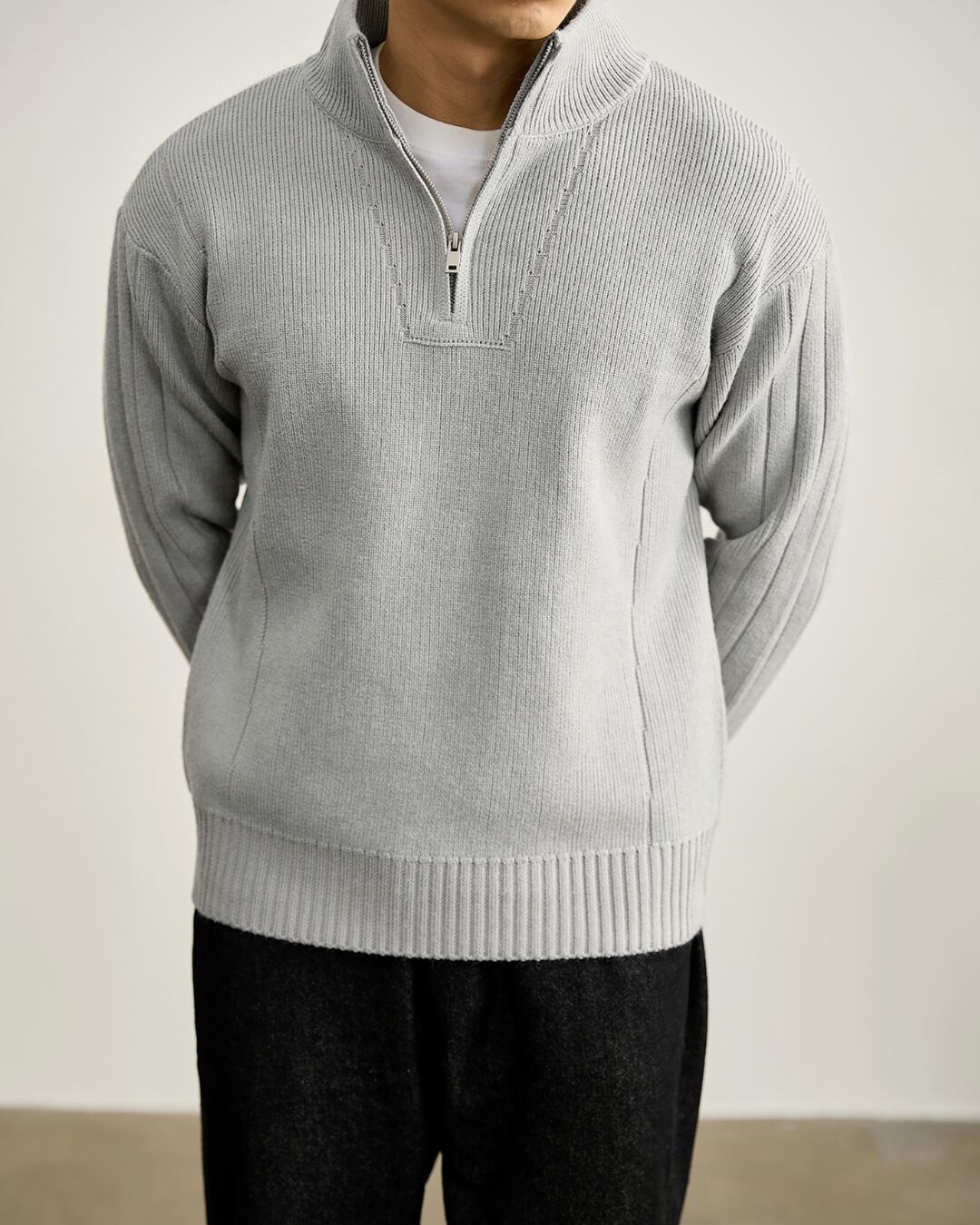 ハーフジップデザインが特徴のニット。