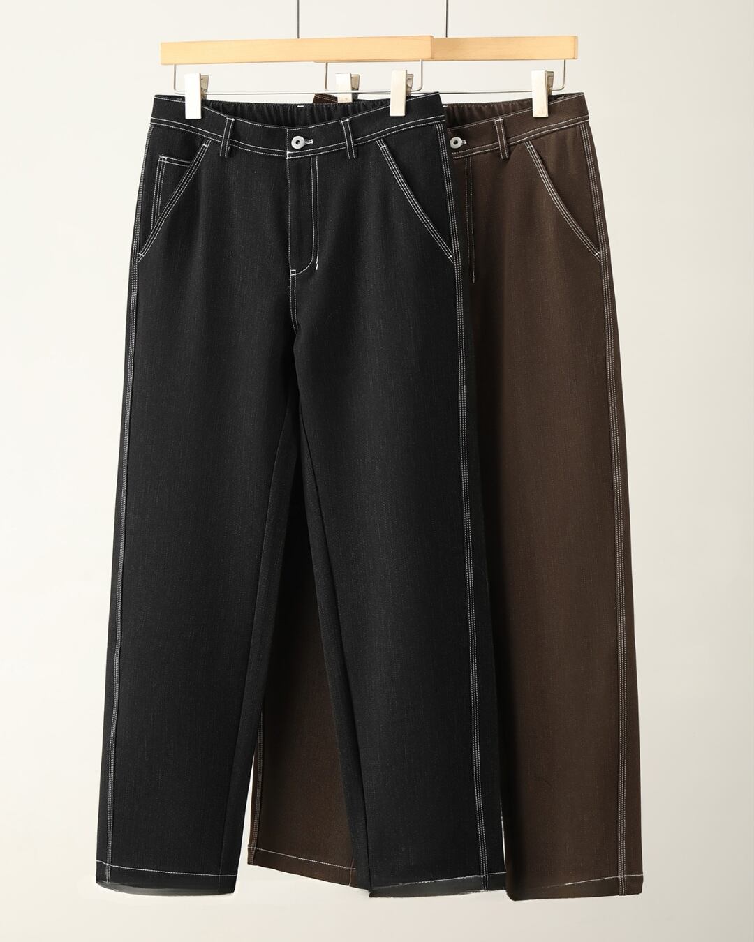 ステッチデザイン ワイドストレッチデニム 2色 A0061