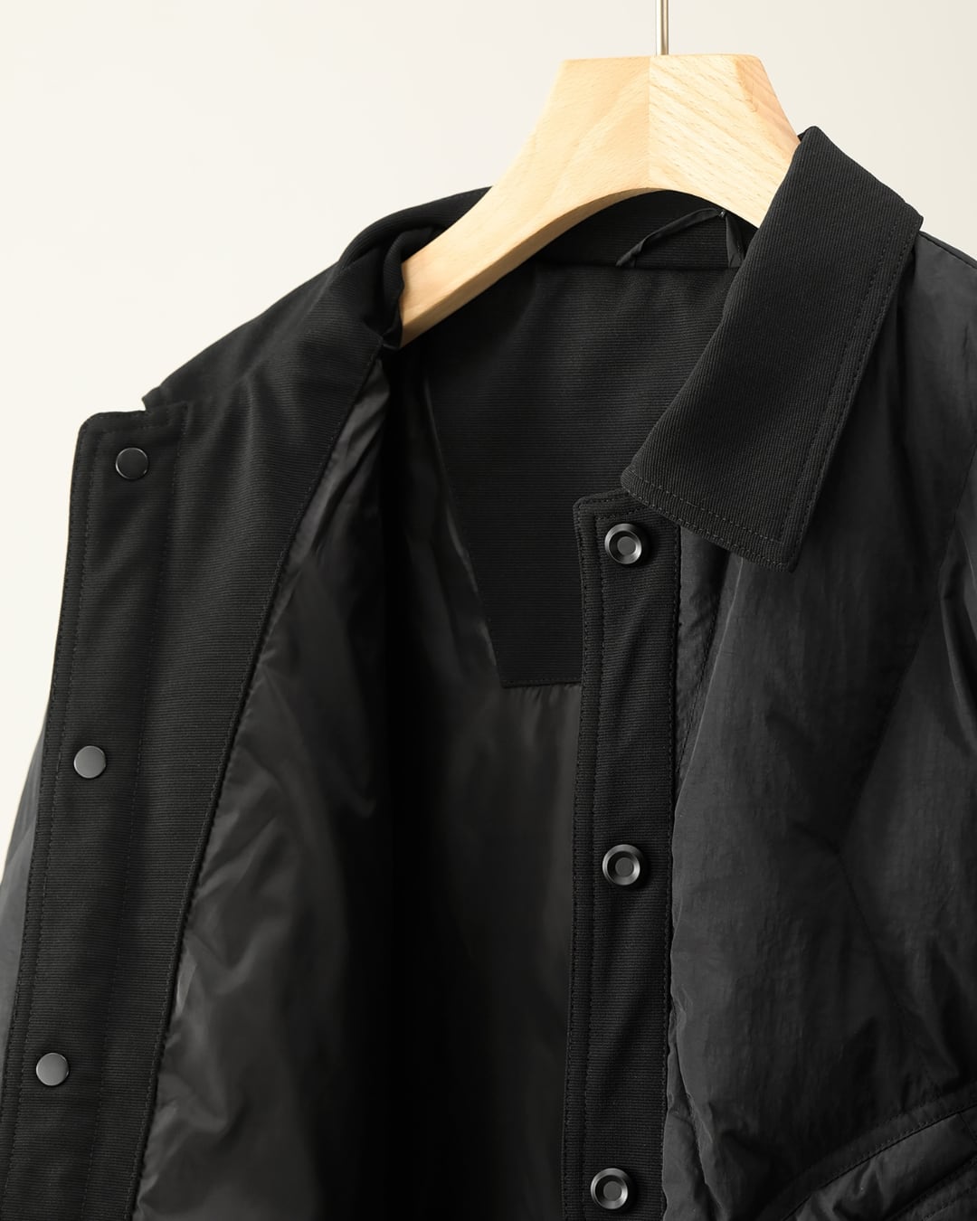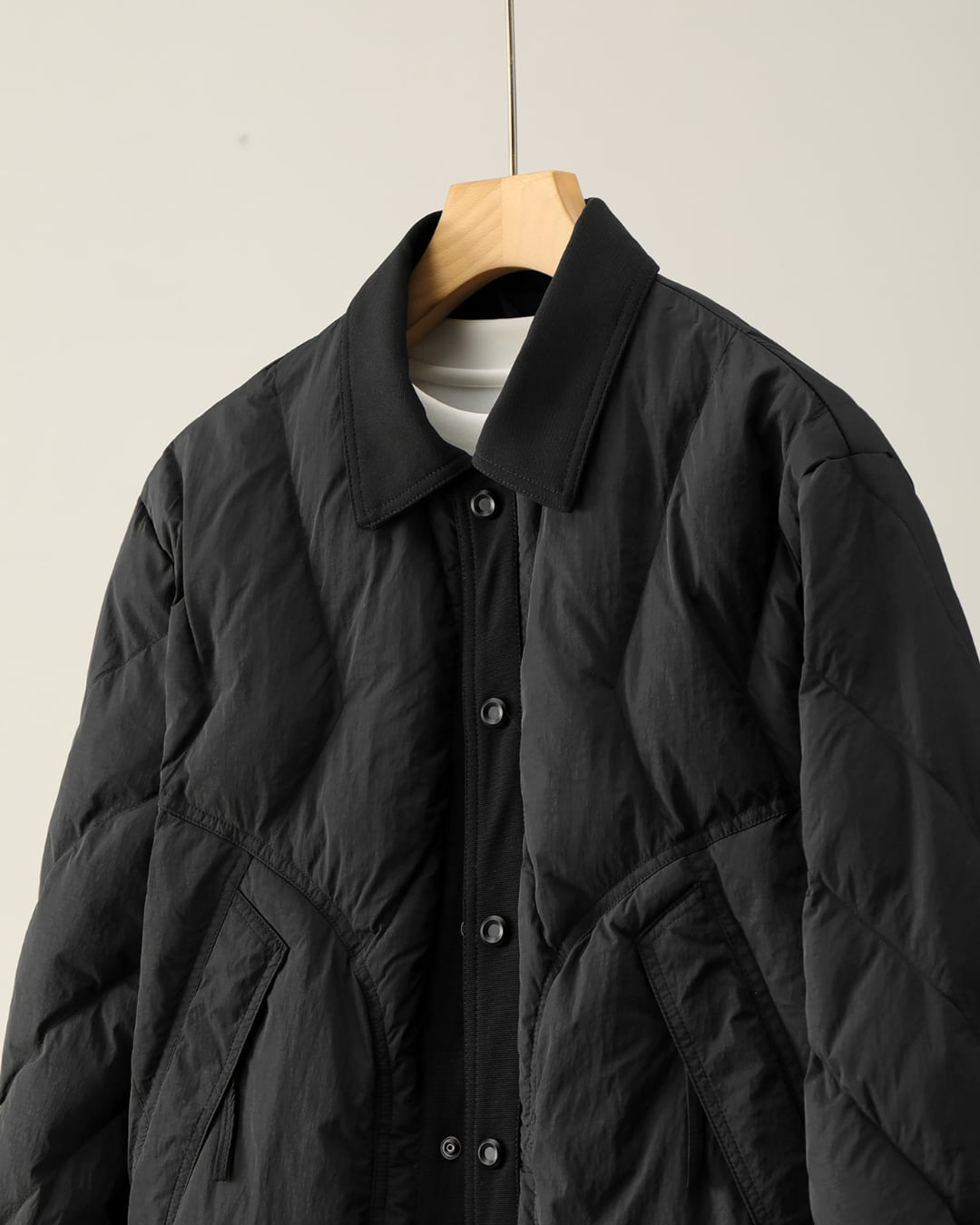 首元はシャツカラーで、すっきりとした印象。