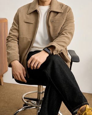 襟付きのベーシックなジャケット型で、