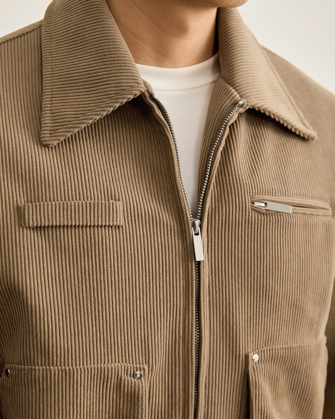 畝(うね)のあるコーデュロイ素材を全面に使用したジャケット。