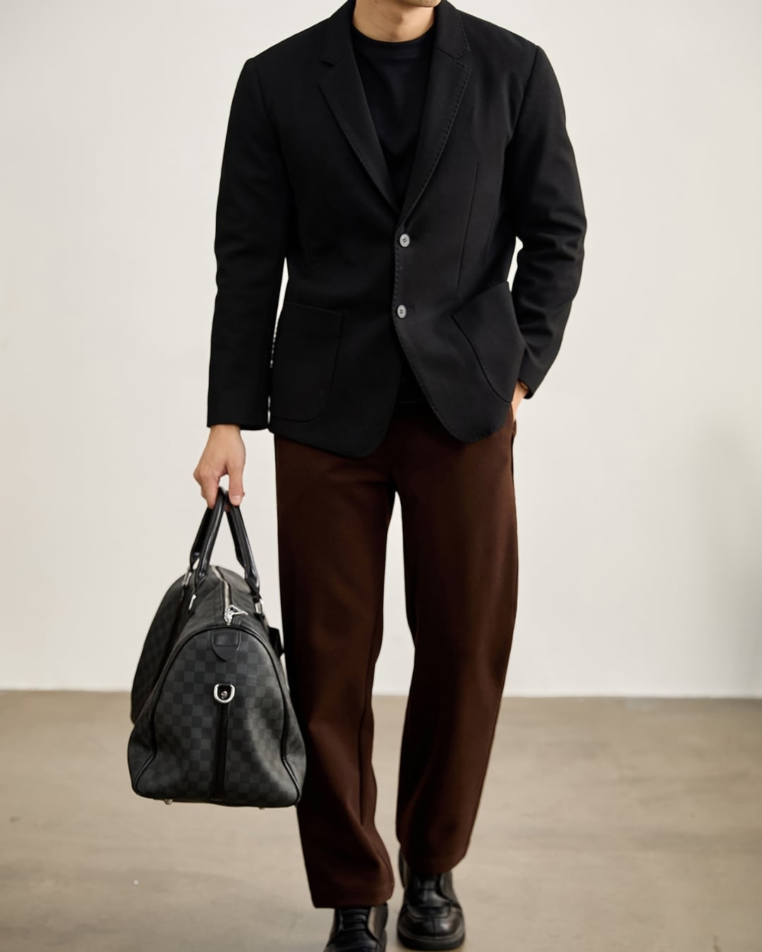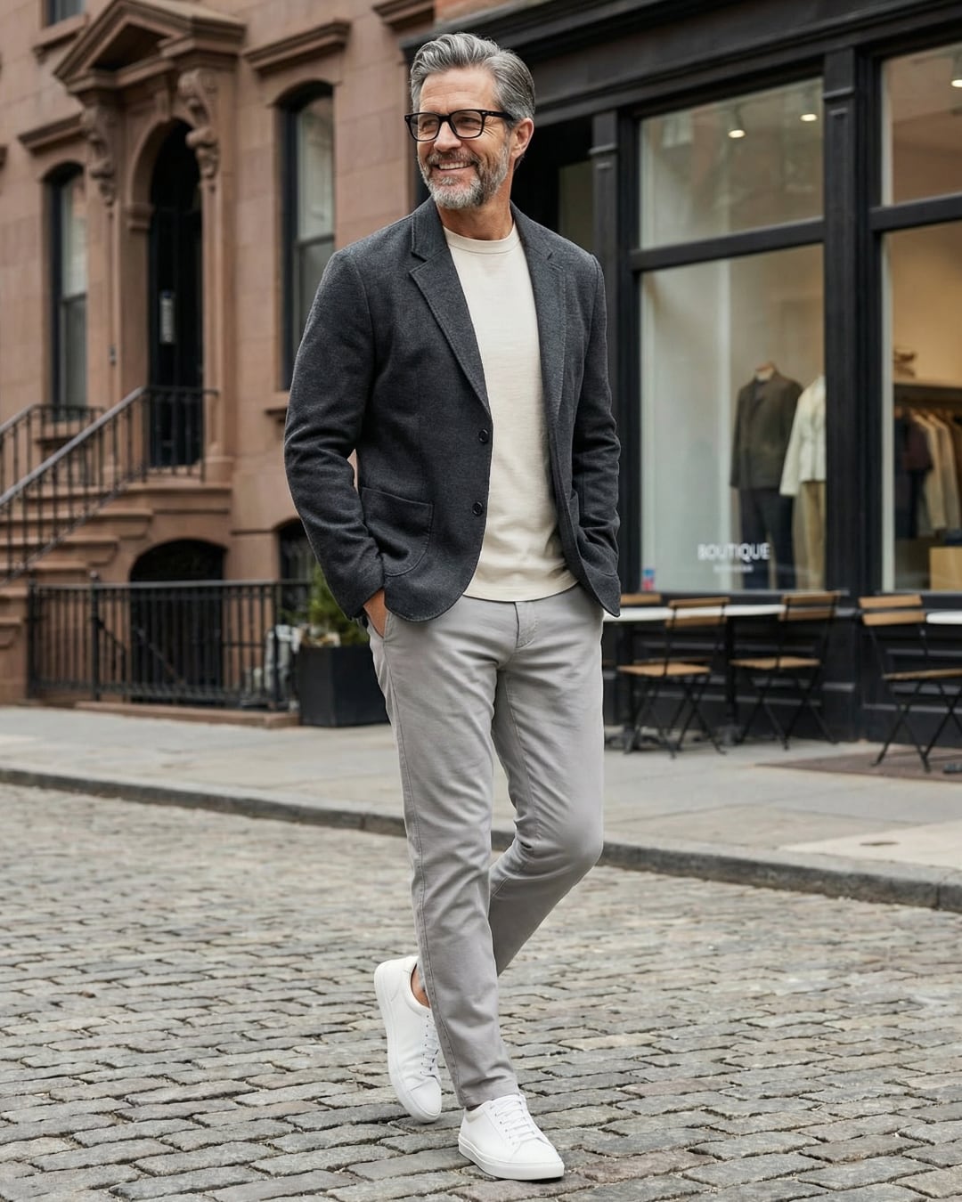 スラックスやデニムと合わせることで、