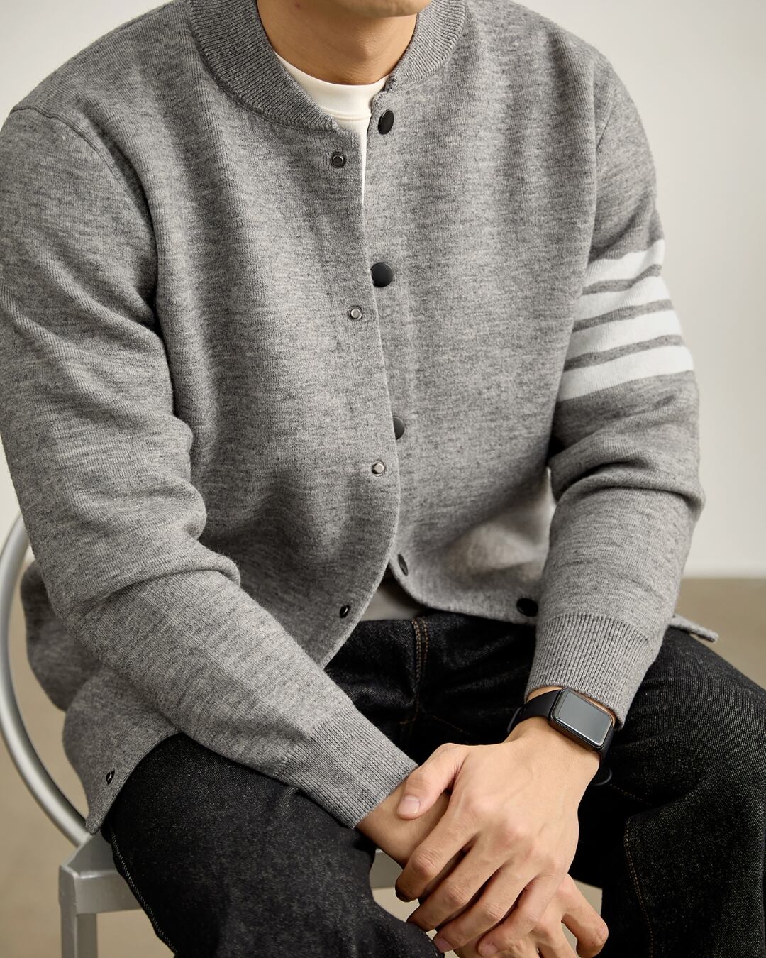 ボタンフロント ライン入りカーディガン 4色 A0083
